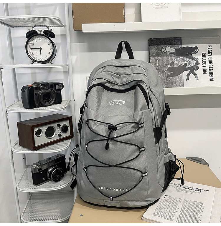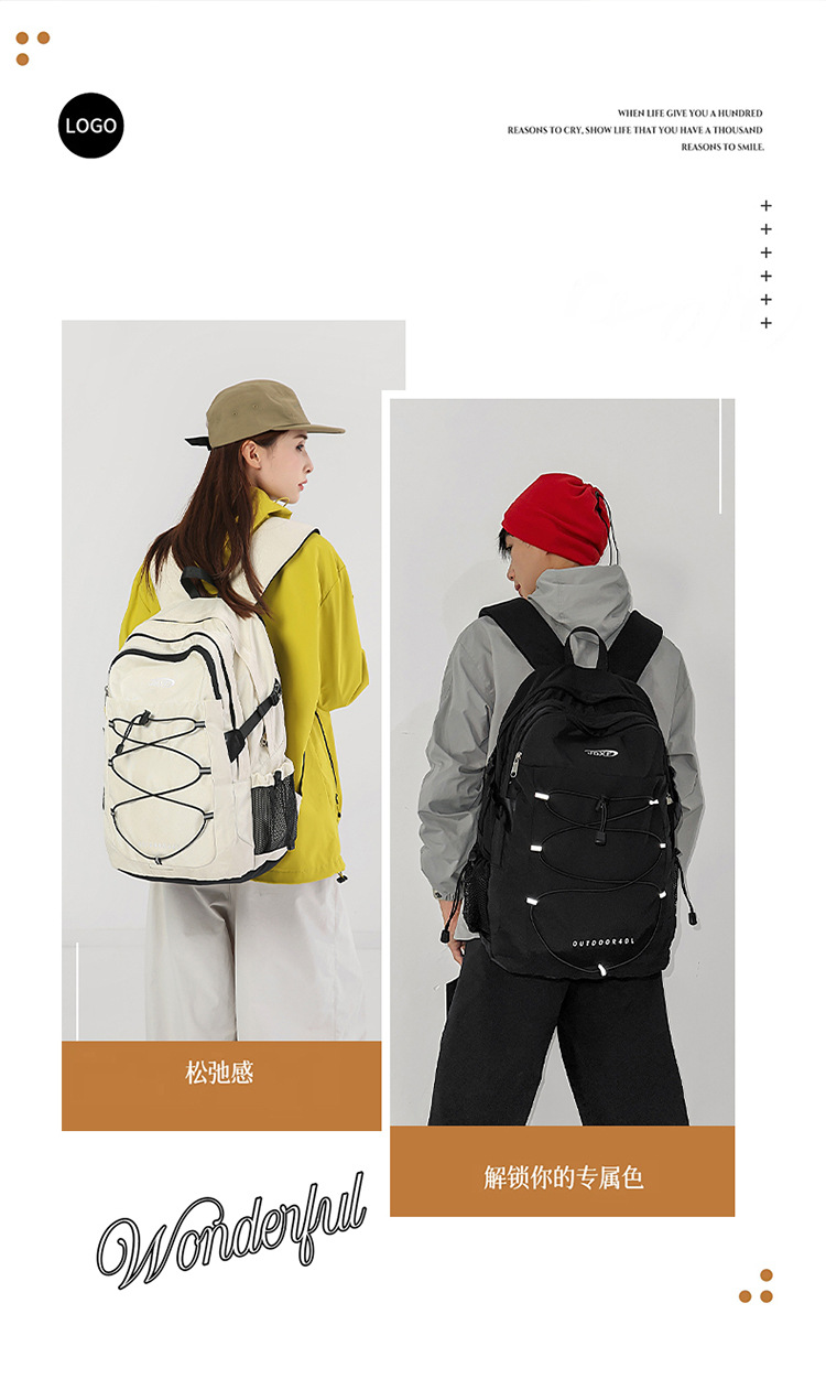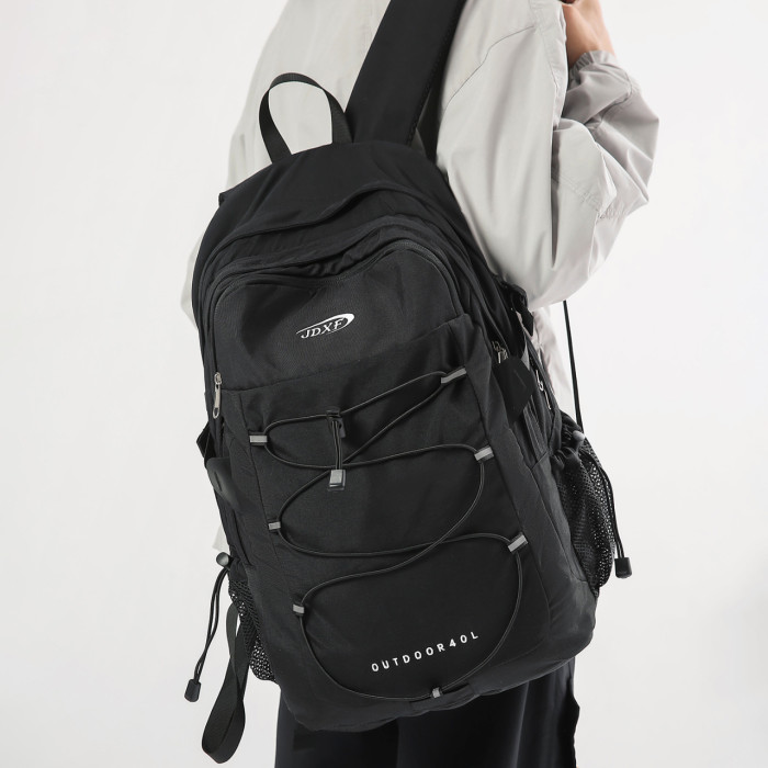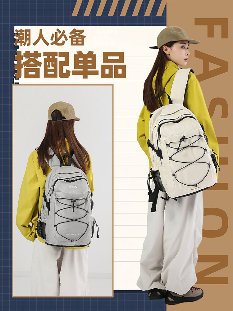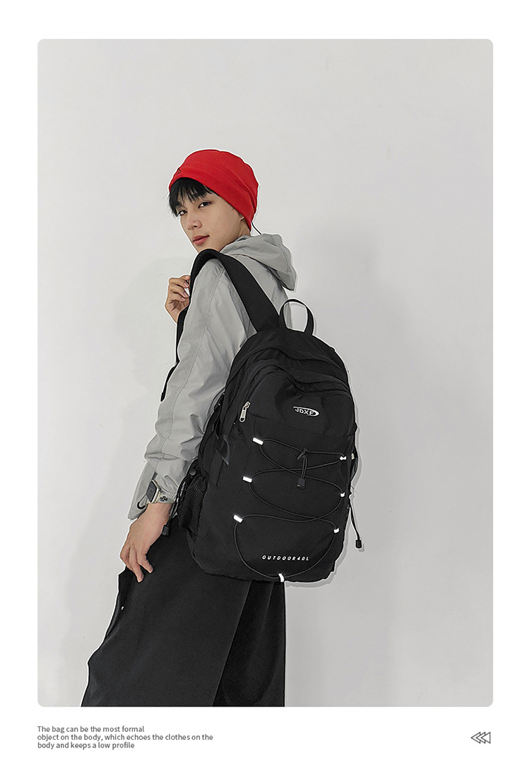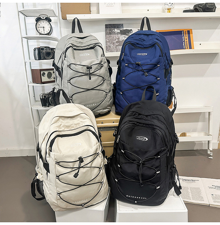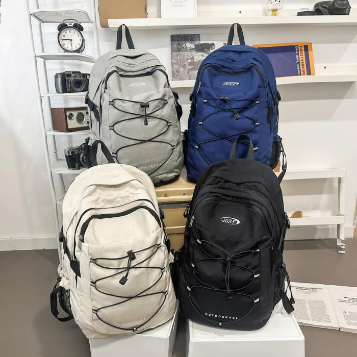 新款高顔值雙肩包小衆設計潮酷抽繩後後背包情侶簡約輕便大容量旅行包