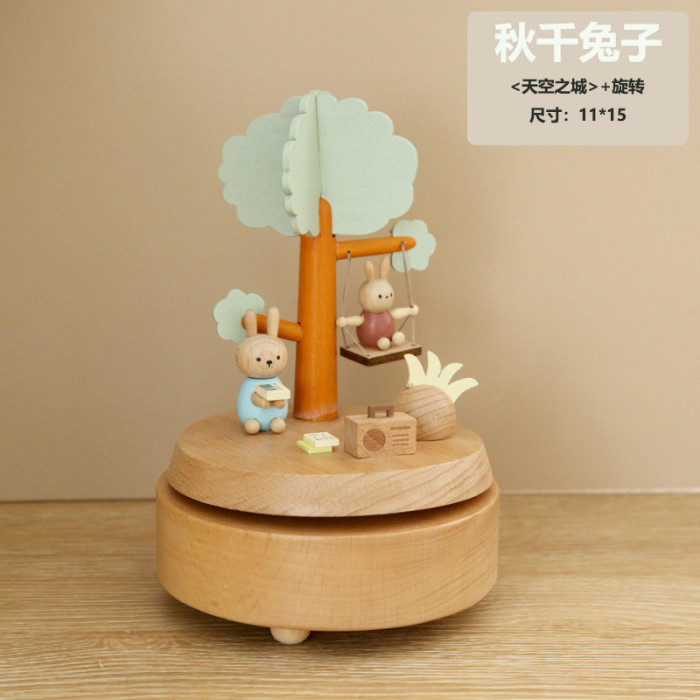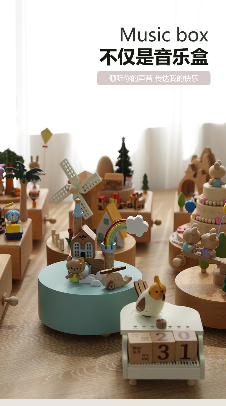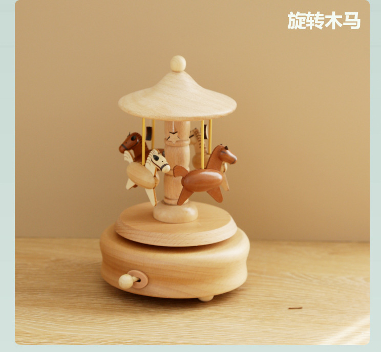音樂盒八音盒可旋轉木馬木質桌面擺件機械髮條新年女孩生日禮物