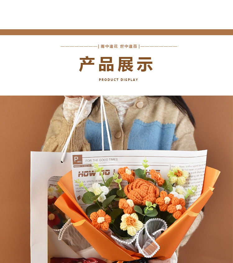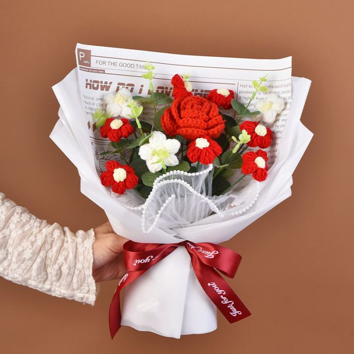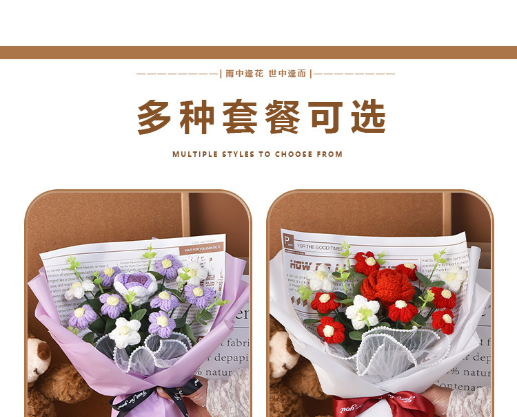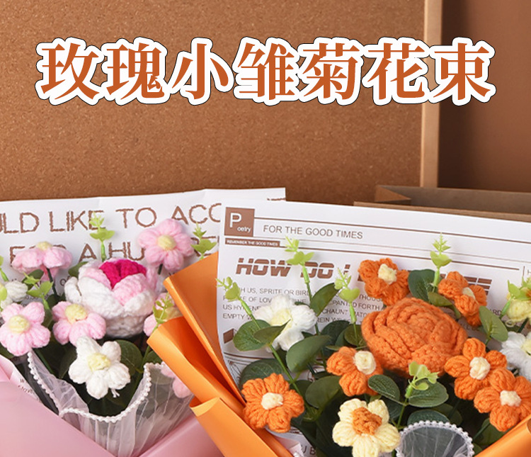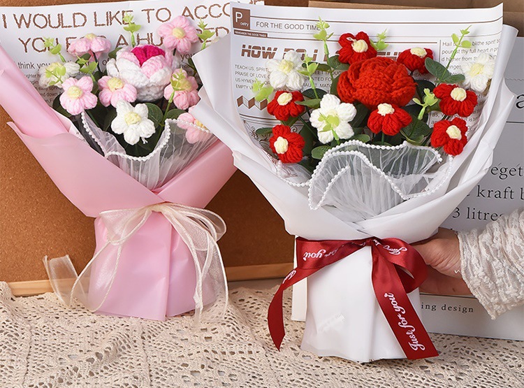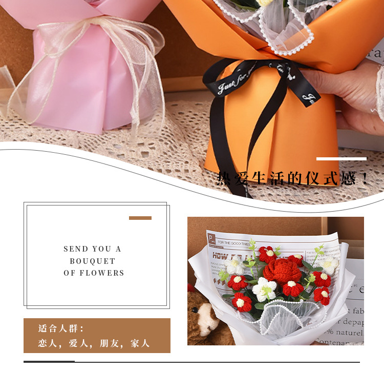 手工編織毛線成品520情人節禮物生日玫瑰花束教師節針織花束