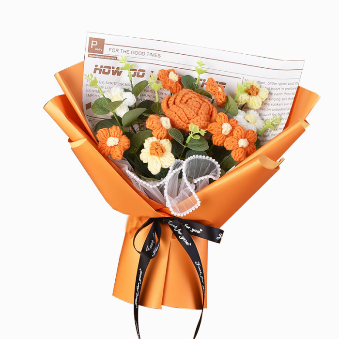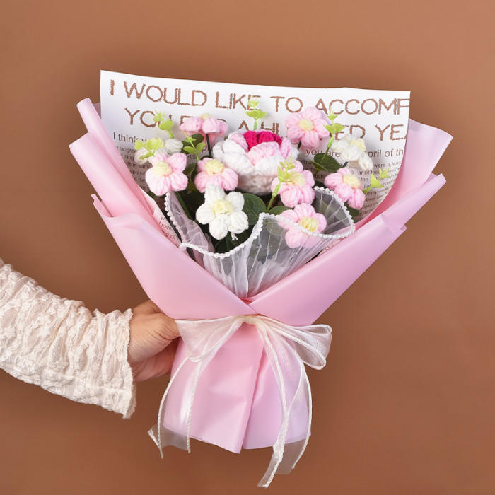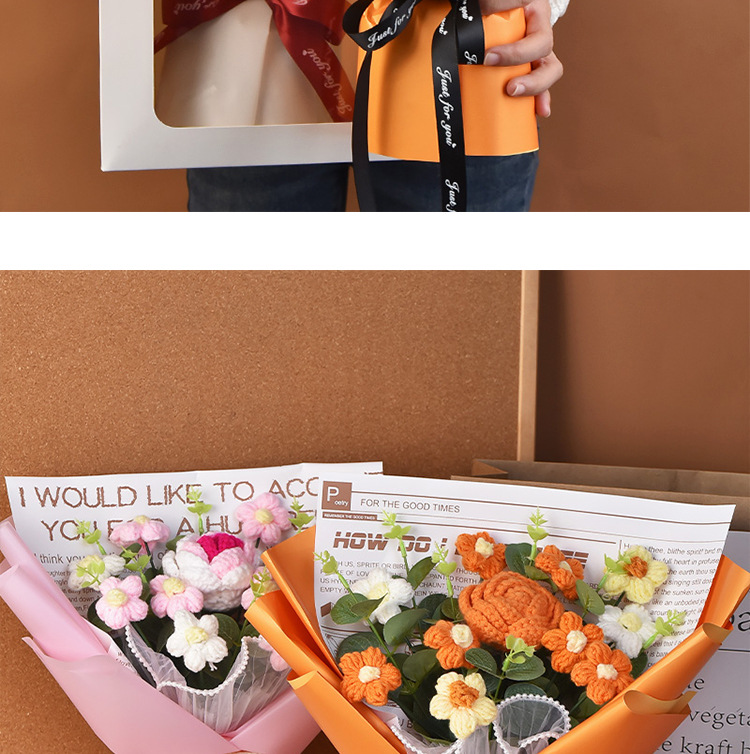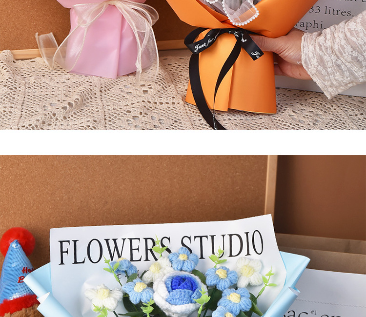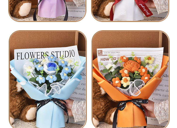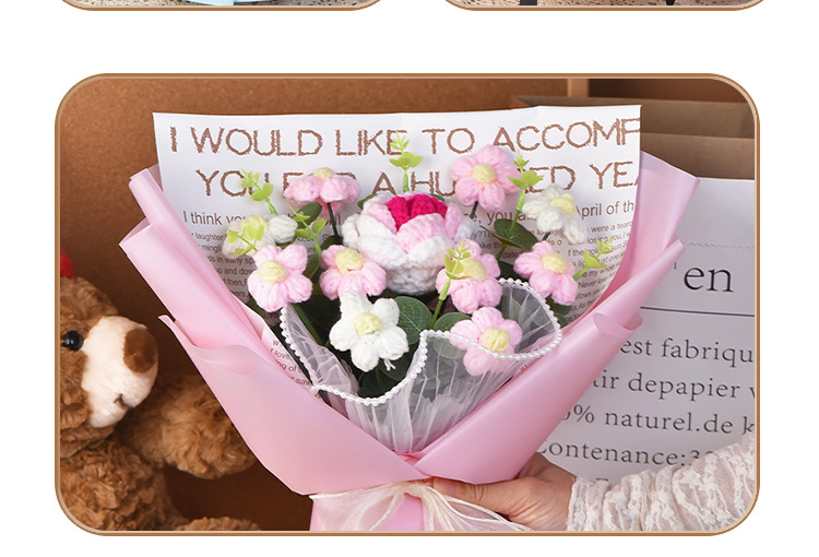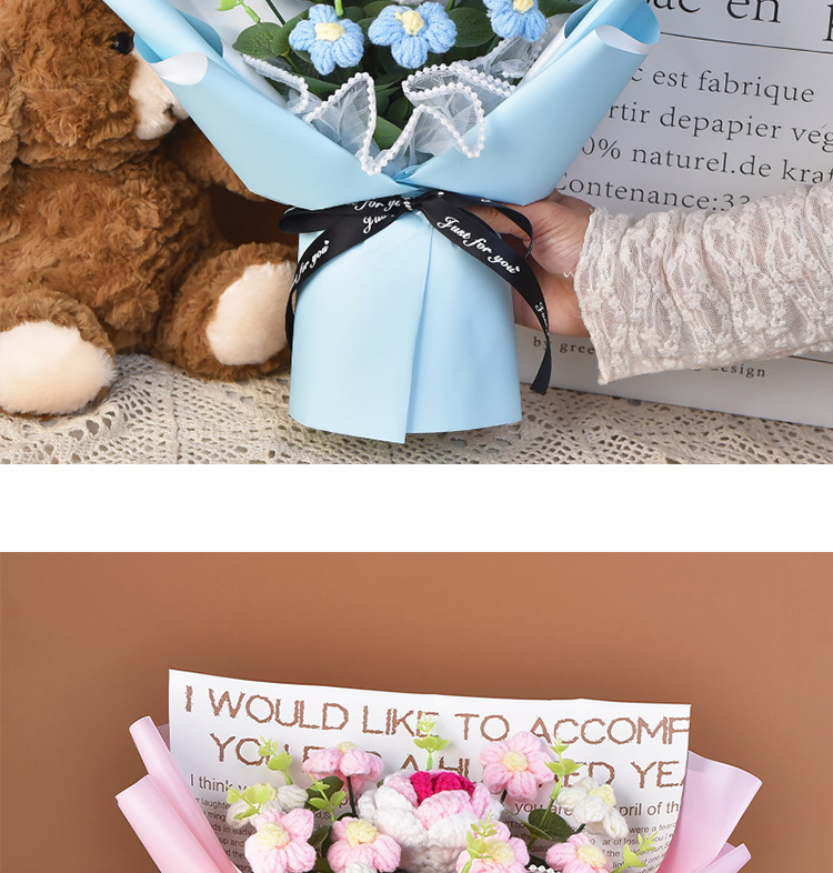 手工編織毛線成品520情人節禮物生日玫瑰花束教師節針織花束