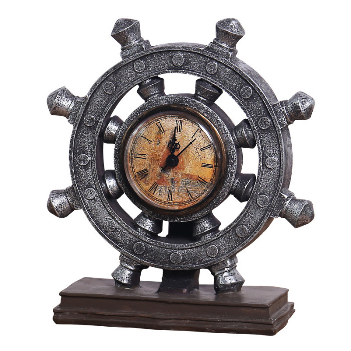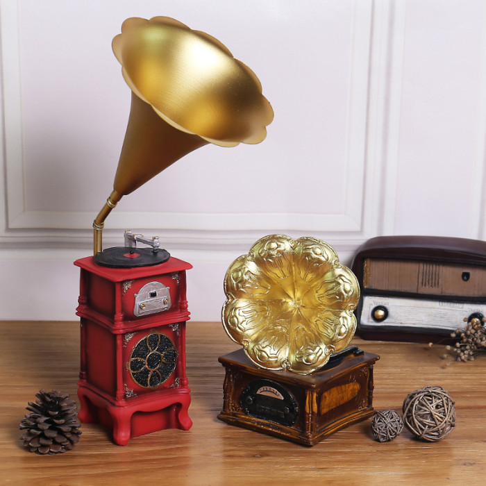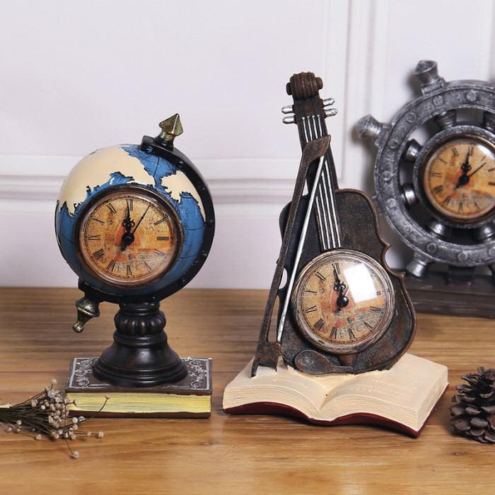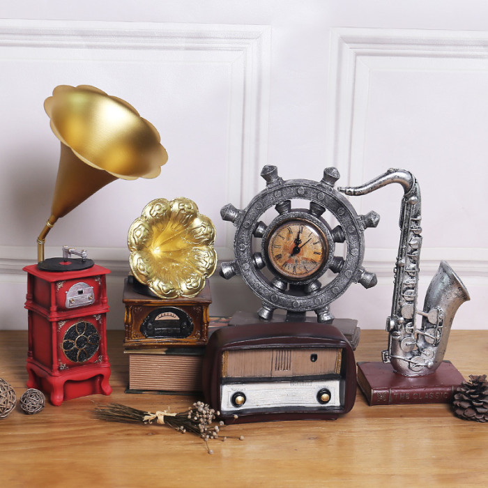 復古懷舊帶鍾表樂器系列擺件 酒櫃玄關咖啡廳工藝品桌面樹脂擺飾
