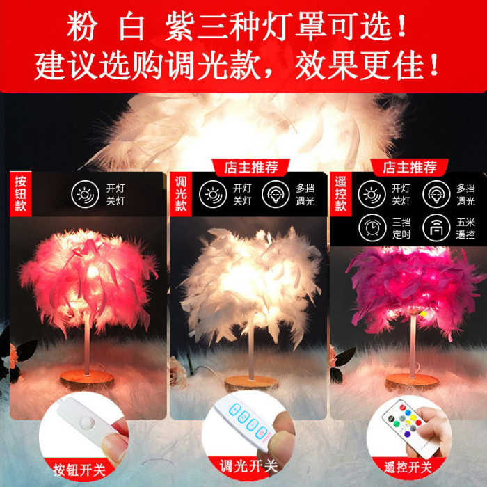 北歐民宿輕奢羽毛台燈臥室床頭燈高級感創意禮物小夜燈裝飾氛圍燈