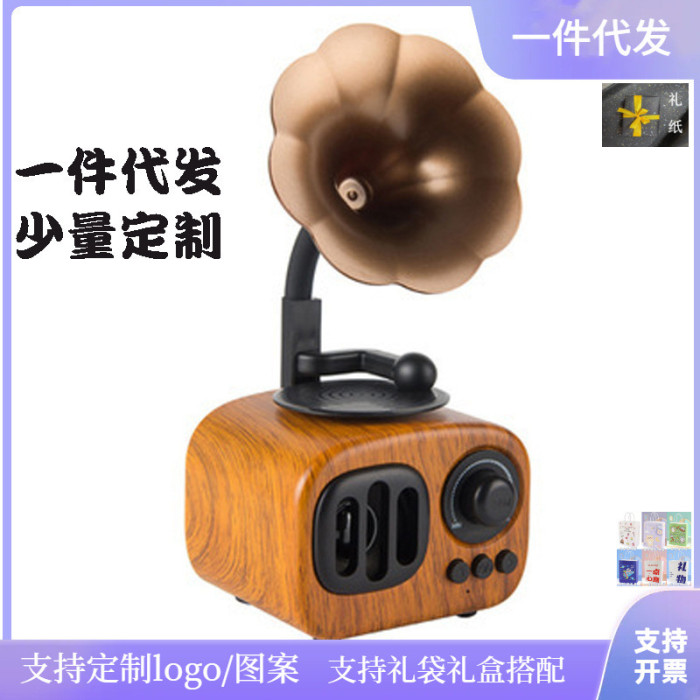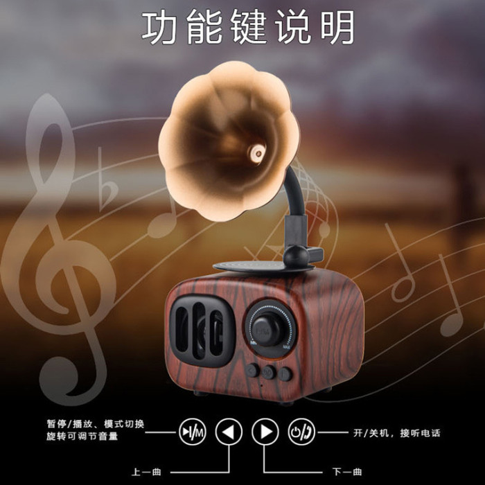 新款b7花梨木仿畱機美式復古無線手機藍牙音箱創意迷你禮品小音響