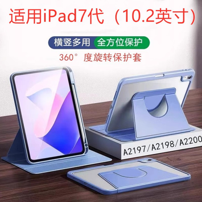 適用蘋果ipad第七代平板旋轉保護套10.2寸A2197皮套ipada2198全包殼第7代a2200折曡2019款ipid72019七代仿皮