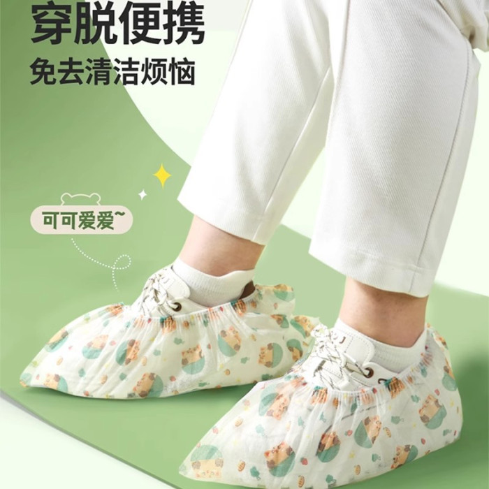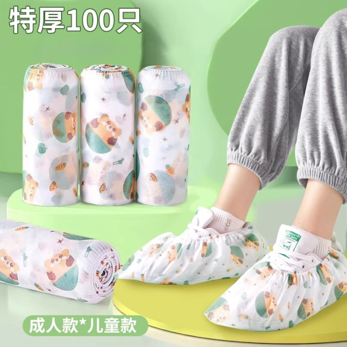 一次性鞋套室內家用加厚耐磨防塵防滑機房兒童學生印花無紡布腳套