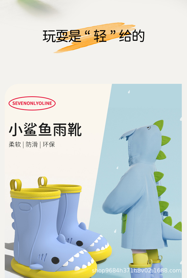 卡通小鯊魚兒童雨鞋男童女孩寶寶雨鞋防滑中小童寶寶水鞋