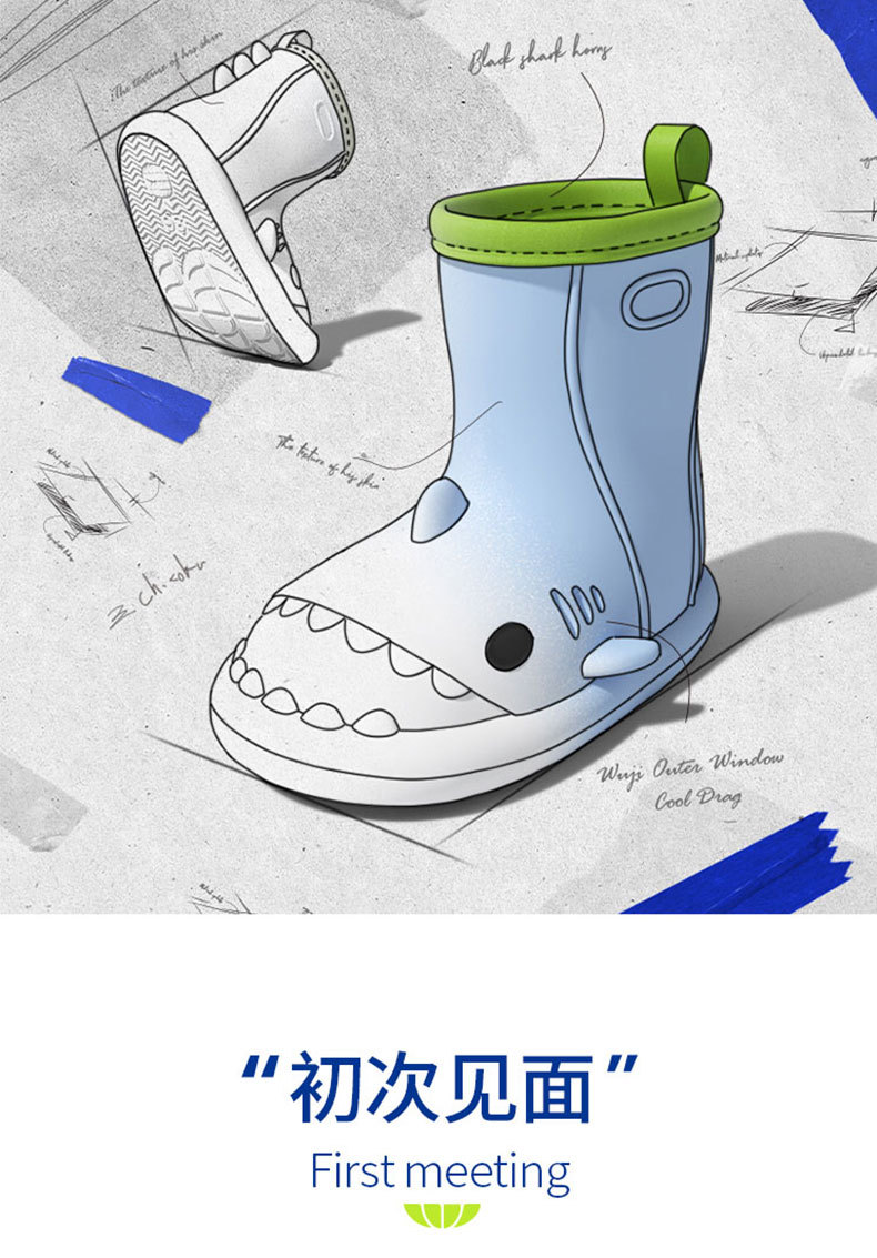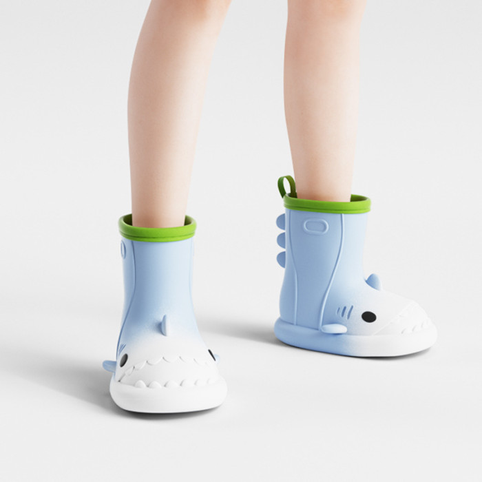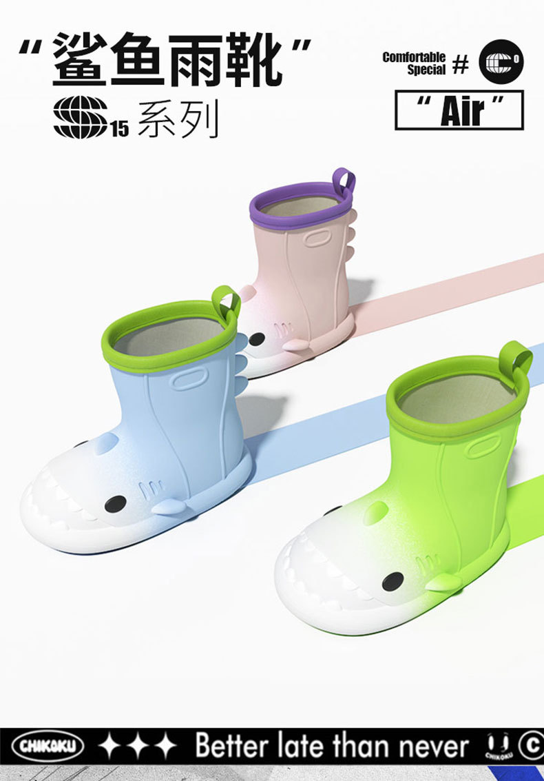 鯊魚雨鞋女款2023新款室外厚底防水膠鞋戶外防滑乳膠軟底卡通雨靴