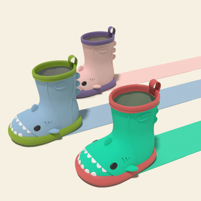 鯊魚成人雨鞋女夏外穿厚底防滑雨靴中大童幼兒親子款可愛防水膠鞋