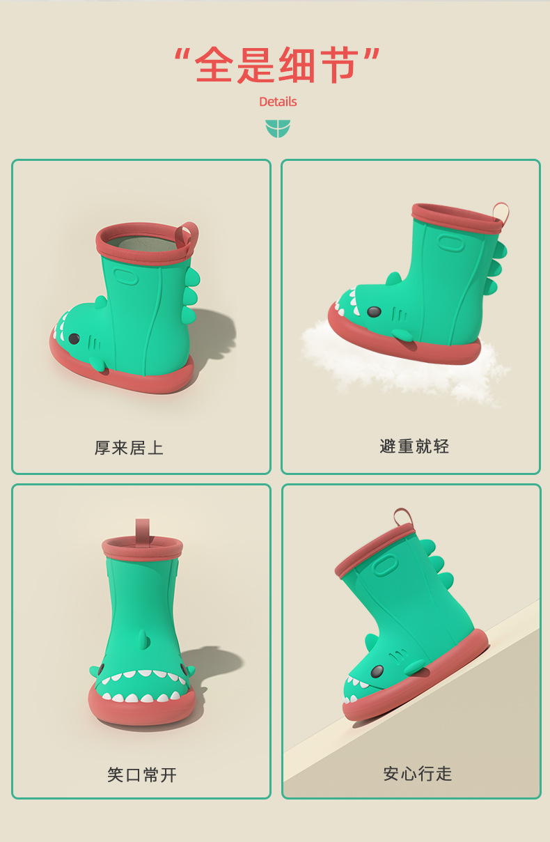 鯊魚雨鞋夏季兒童雨靴男童防滑耐磨幼兒園女可愛輕便防水膠鞋小童