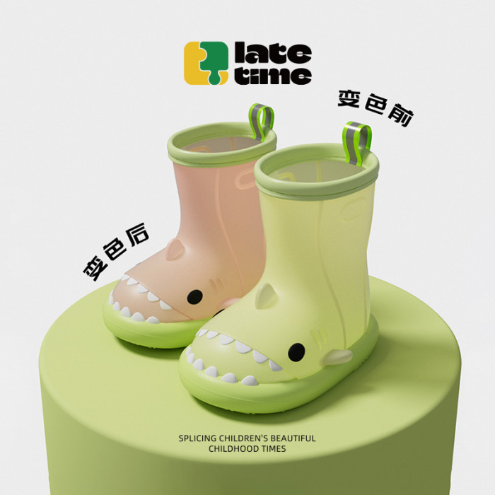 鯊魚變色雨靴男女童卡通嬰幼兒中小童雨靴可愛寶寶戶外穿膠鞋水鞋