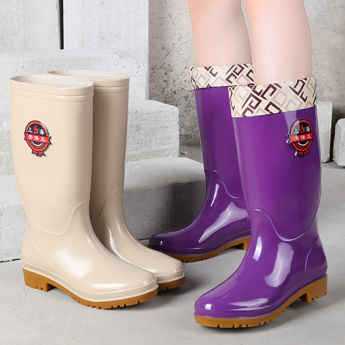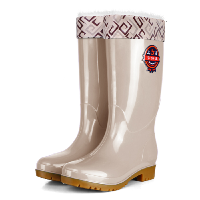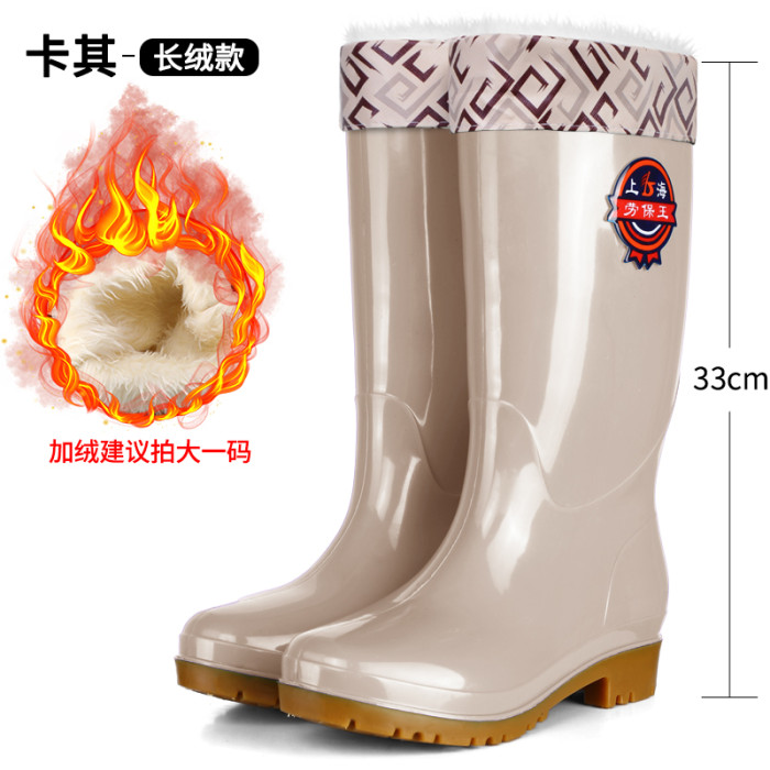 冬季加絨高筒保暖女雨鞋長筒水靴廚房牛筋底防滑膠鞋大碼勞保膠鞋
