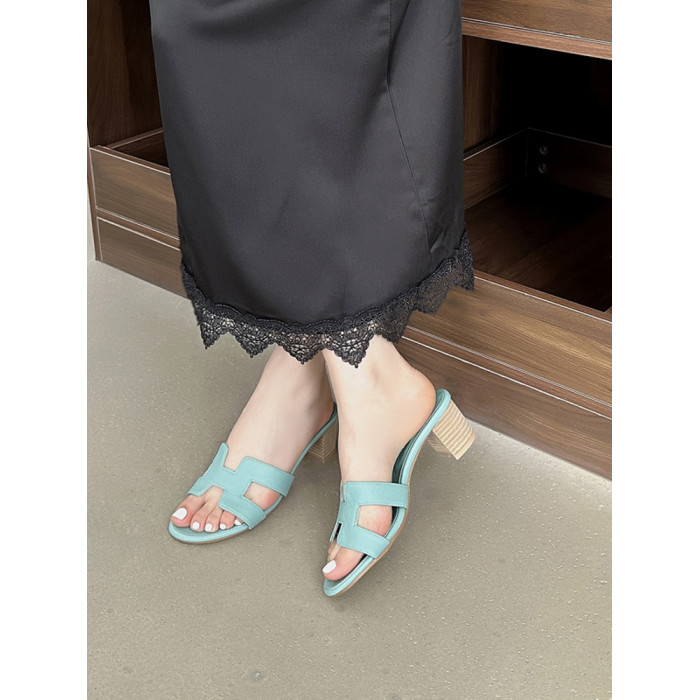 【鞋大師】新款網紅拖鞋女中跟粗跟涼拖鞋女外穿時尚真皮沙灘拖鞋