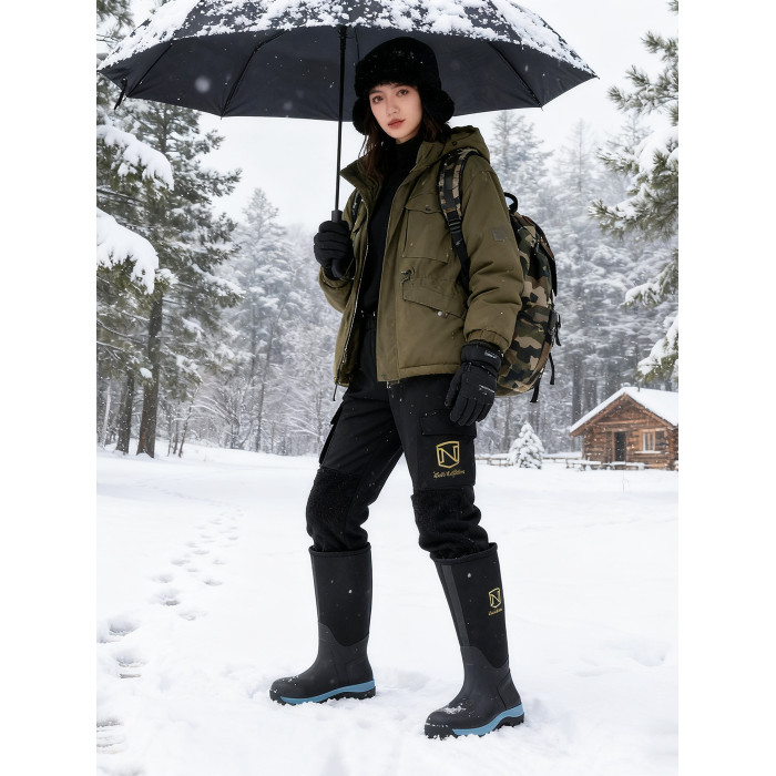 秋冬女士高筒戶外防水雨鞋厚底耐磨膠鞋保暖透氣防水靴抗凍膠靴