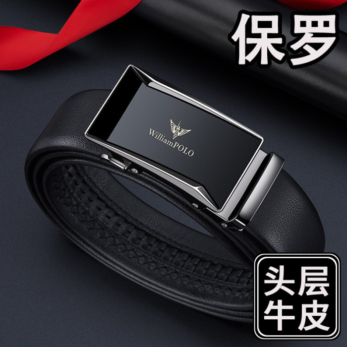 英皇保羅皮帶男士真皮皮帶男自動釦腰帶男款商務休閒男士皮帶