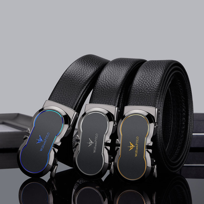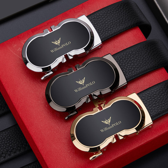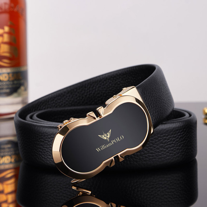 英皇保羅皮帶男士真皮皮帶男自動釦頭層牛皮腰帶男士牛皮皮帶