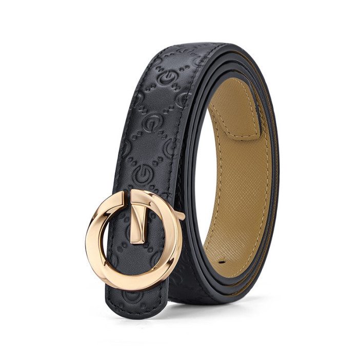 英皇保羅皮帶真皮女頭層牛皮簡約平滑釦女士皮帶百搭牛仔腰帶