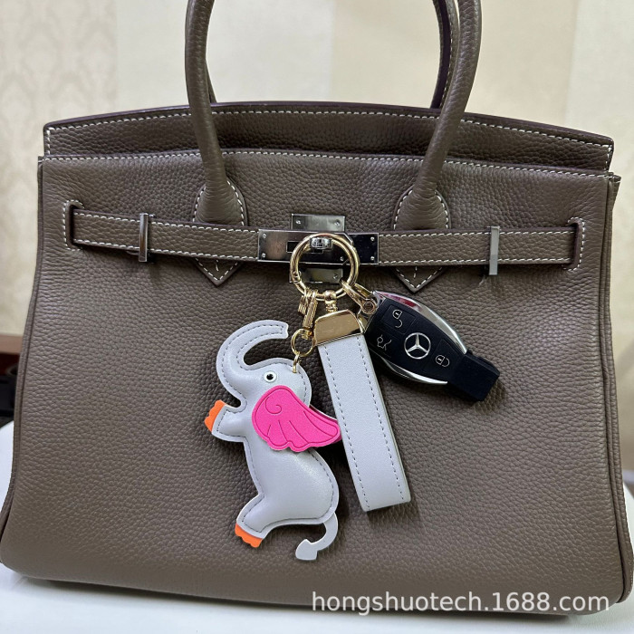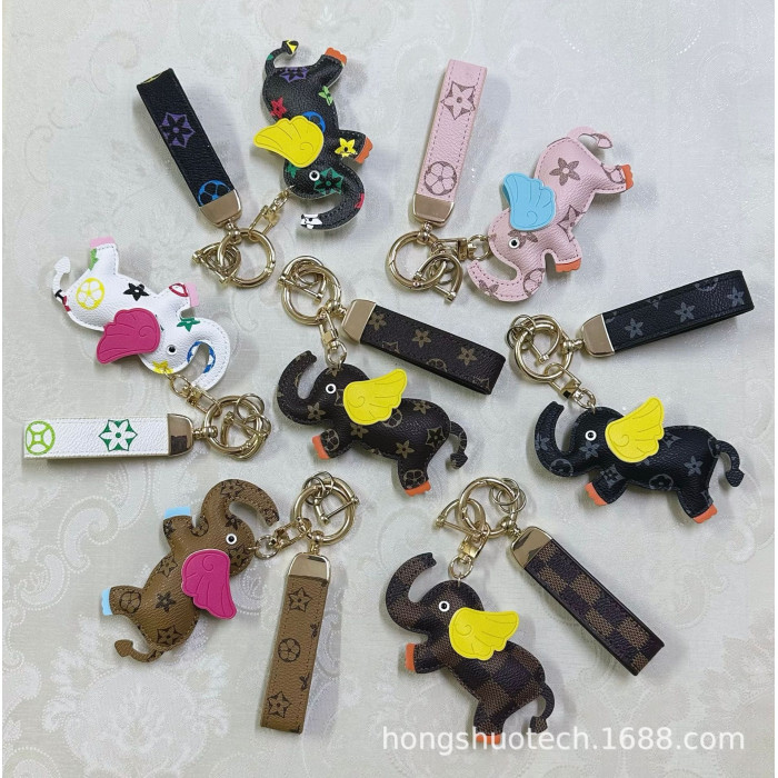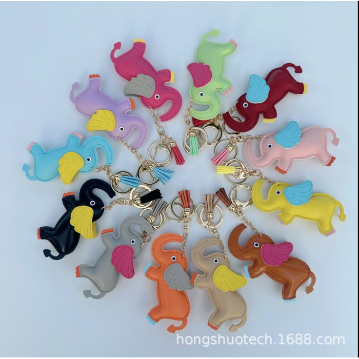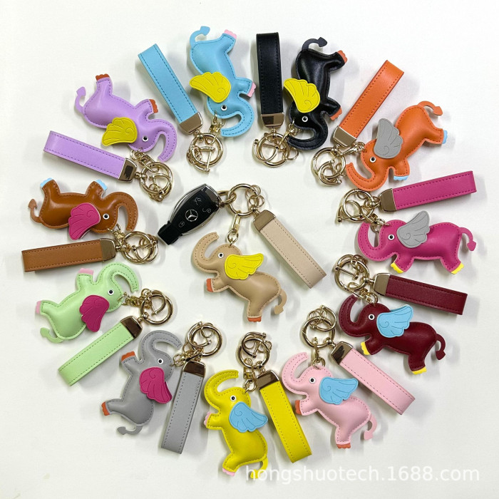 潮流大象包包掛件創意小飛象手機殼腕帶掛件皮質汽車鑰匙扣掛飾