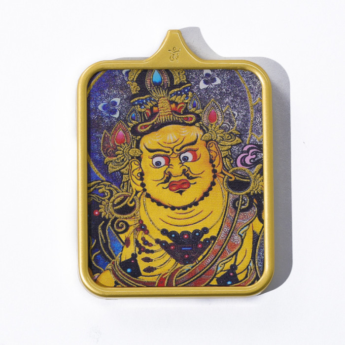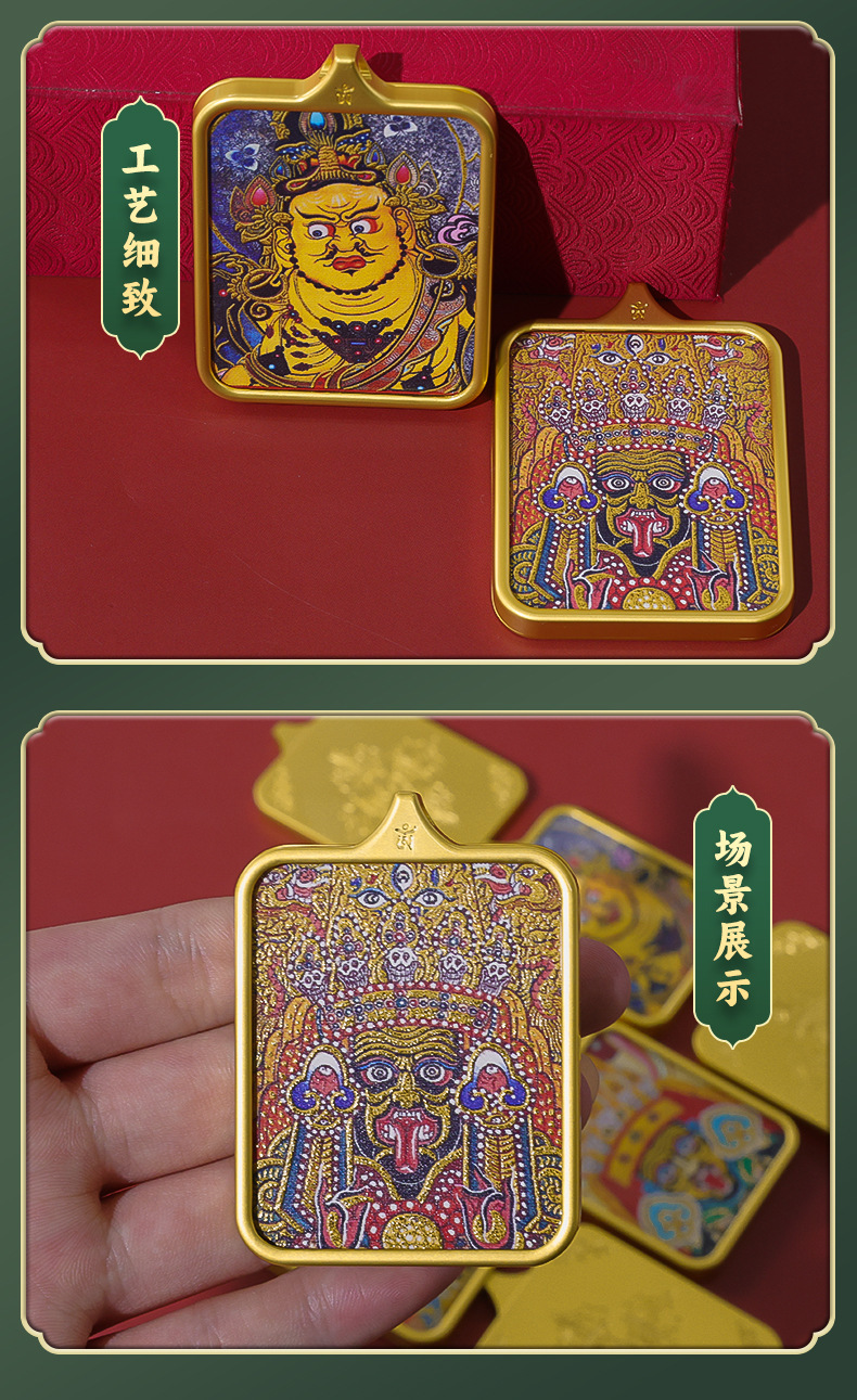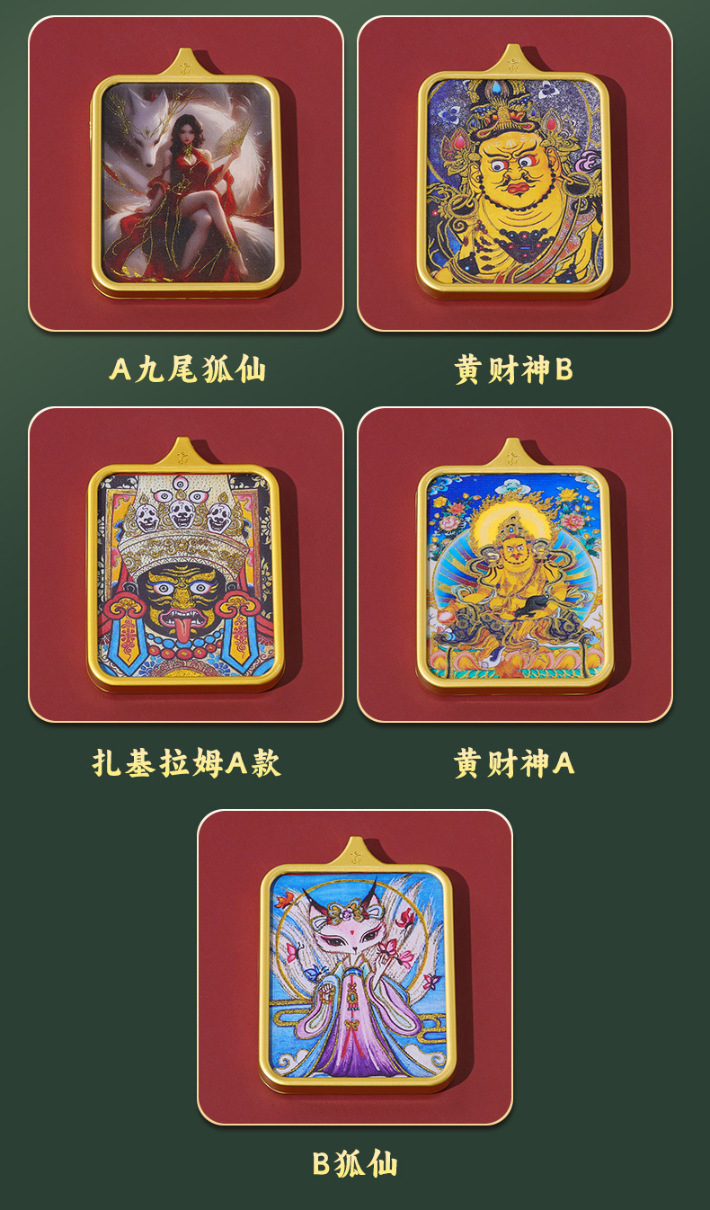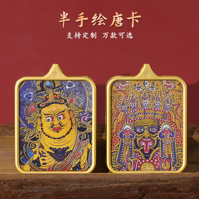 半手繪唐卡藏式紥基拉姆九尾狐五爺鈦鋼描金彿牌前世今生唐卡吊墜
