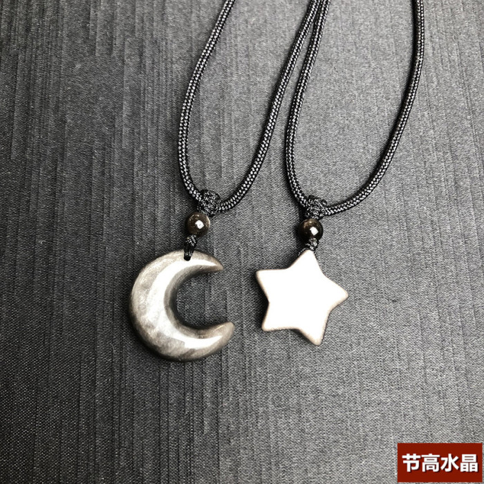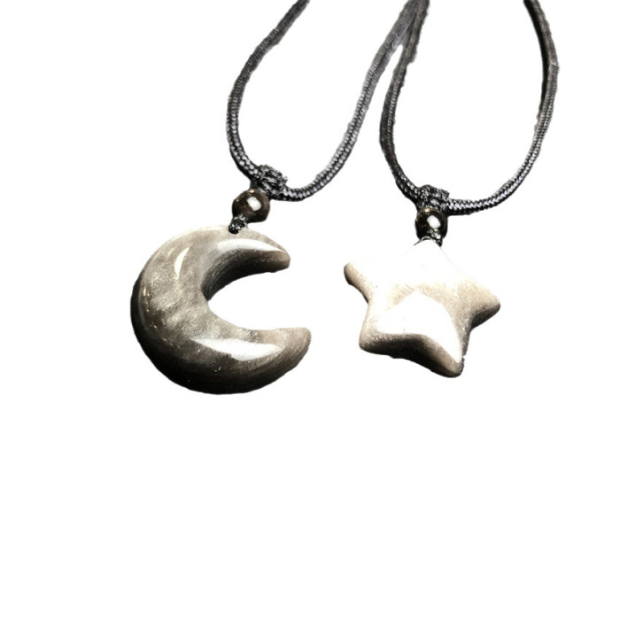天然銀曜石星月情侶簡約時尚黑曜石伸縮項鍊吊墜