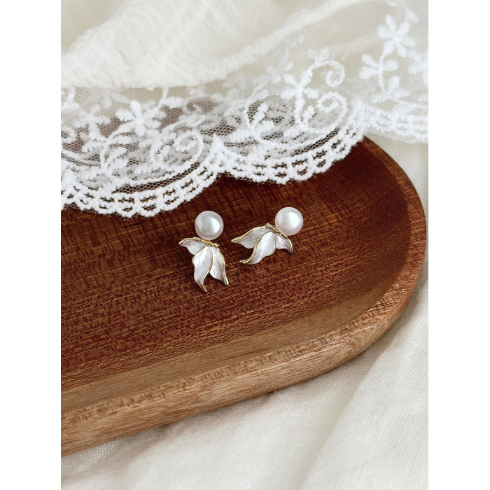 輕奢高級感獨特天然淡水珍珠魚尾耳環女秋冬2026新款爆款耳飾耳釘