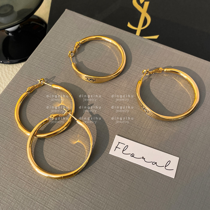 金色字母大圈圈耳環女士歐美復古氣質高級感耳圈誇張大氣設計耳飾
