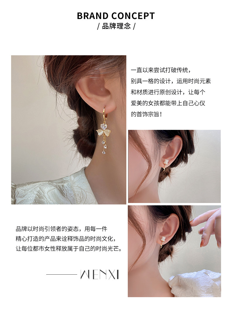 輕奢三葉草耳環2026年新款小衆設計感高級流蘇耳釦女氣質秋冬耳飾