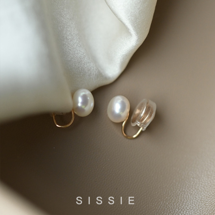 AAAAA淡水天然珍珠無痛蚊香盤耳夾無耳洞女新款小耳釘耳環耳飾