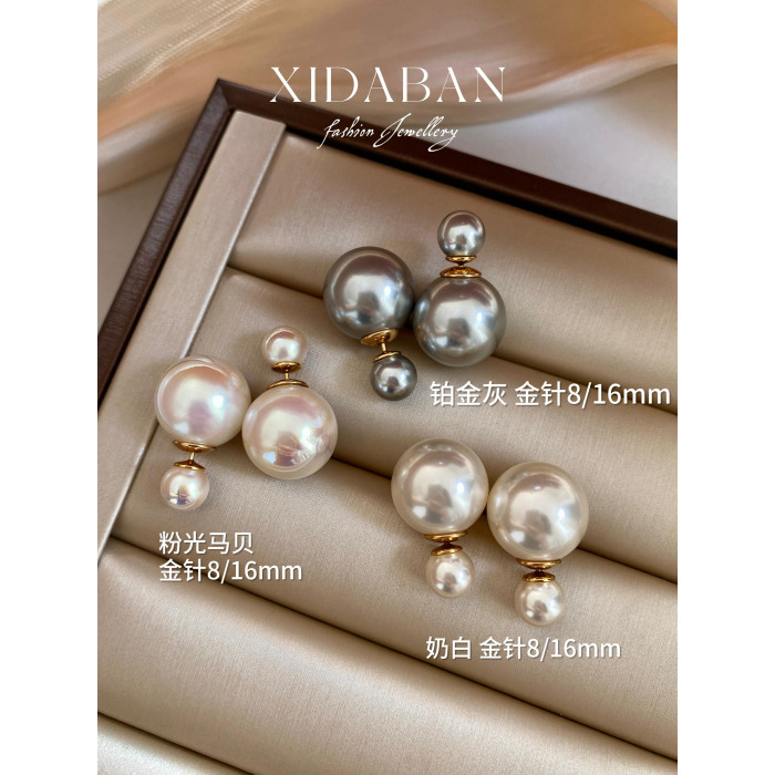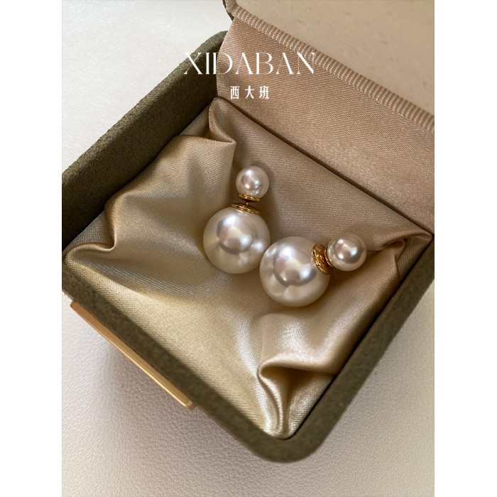 D家經典前後兩戴趙露思同款雙珠施家珍珠耳環女法式小衆輕奢耳釘