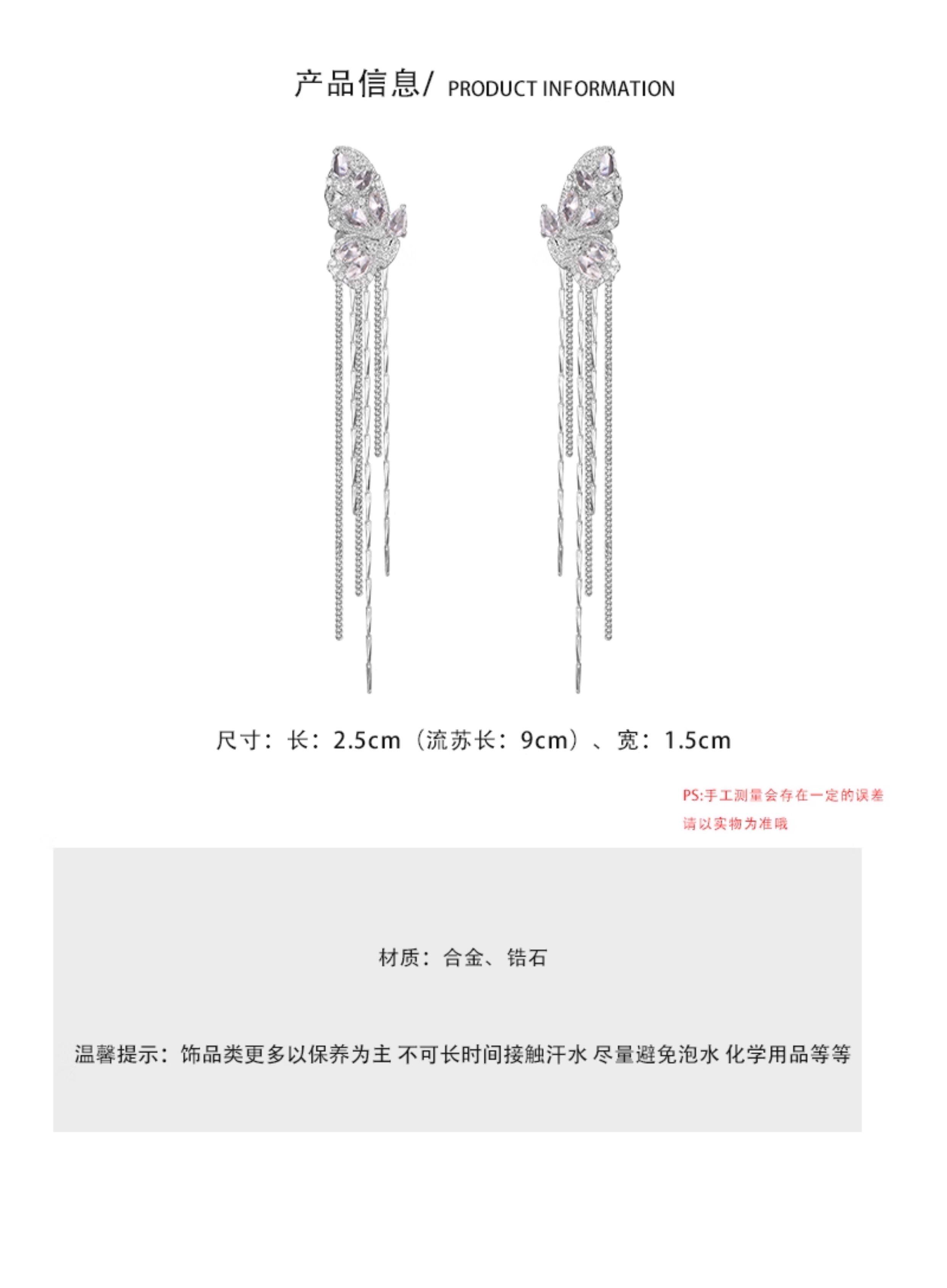BXA一秒淪陷~蝴蝶鋯石耳骨夾耳飾無耳洞耳夾2026新款宴會禮服耳環
