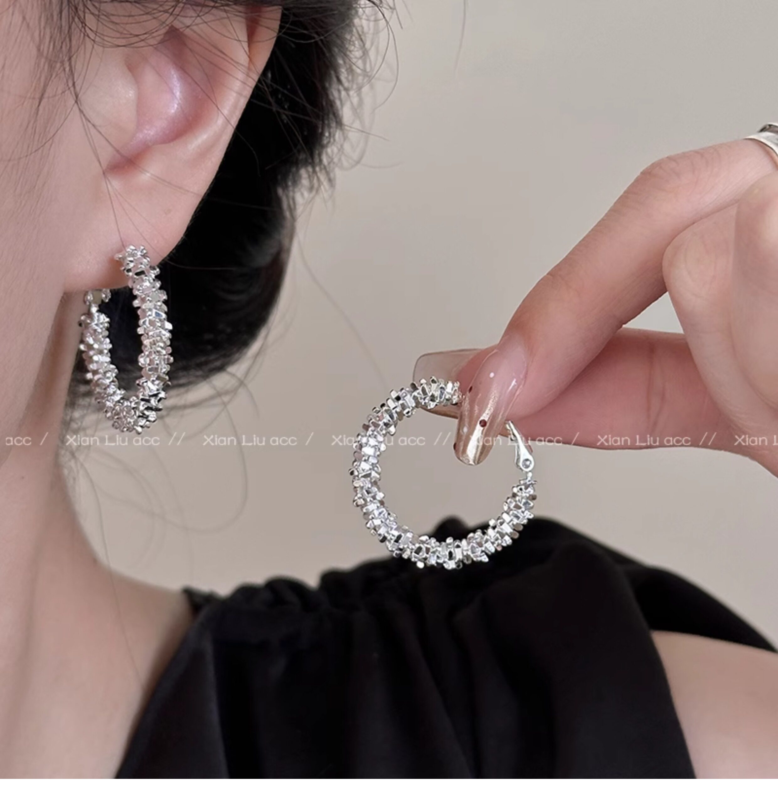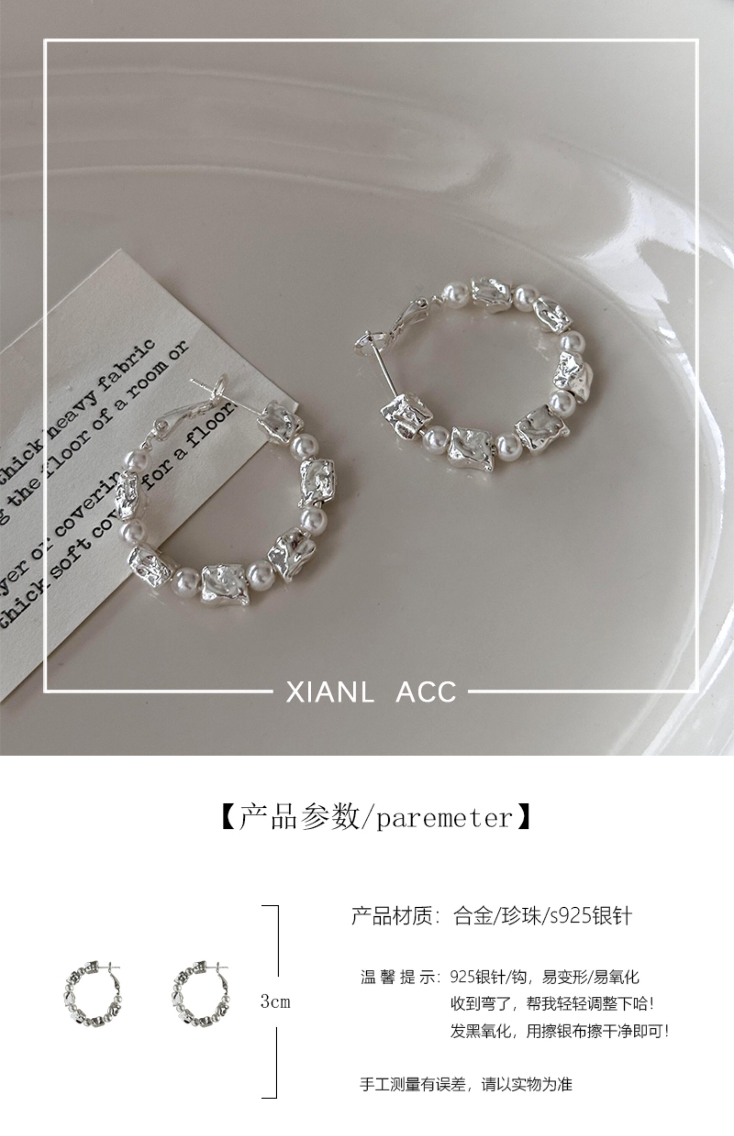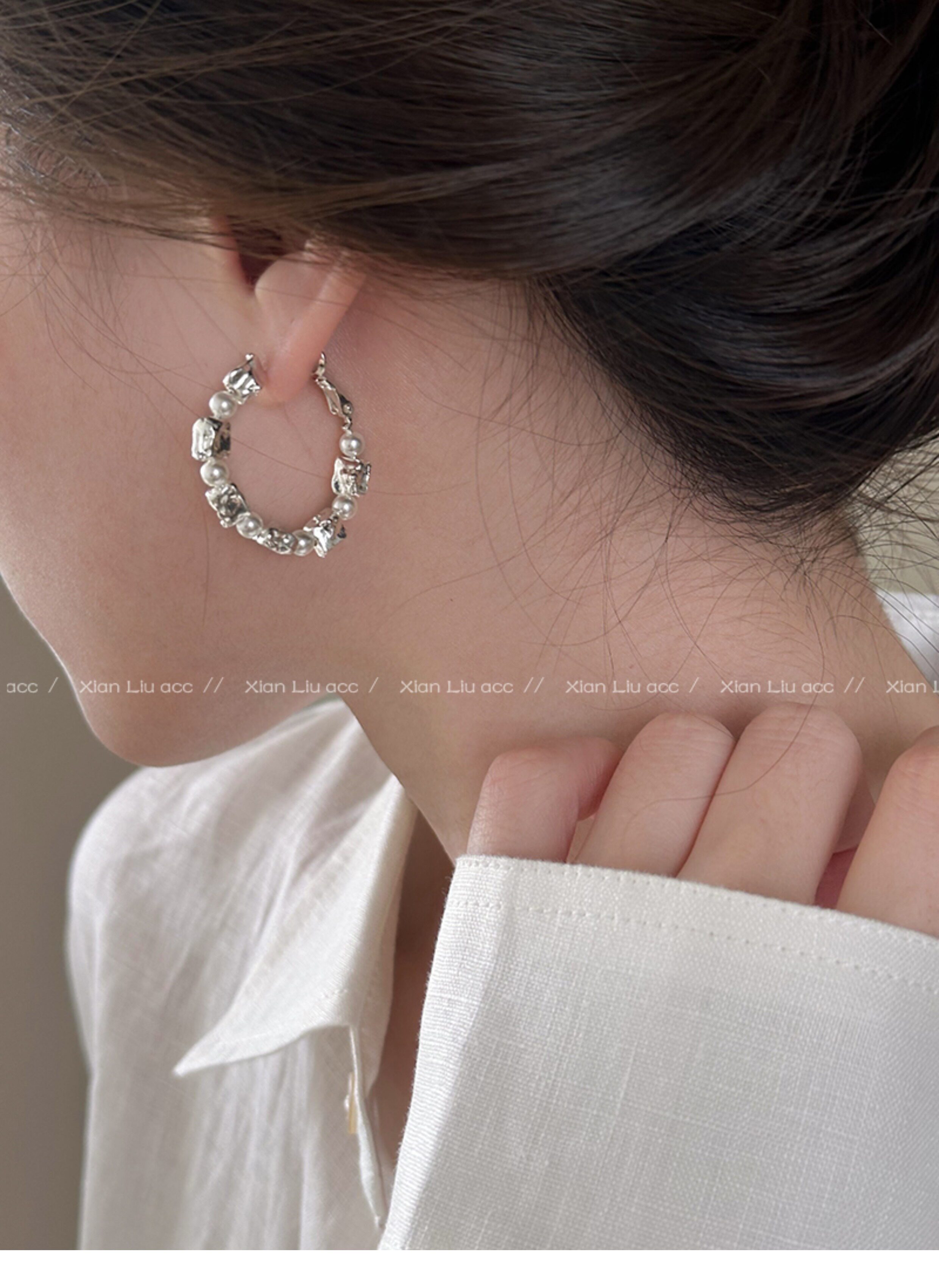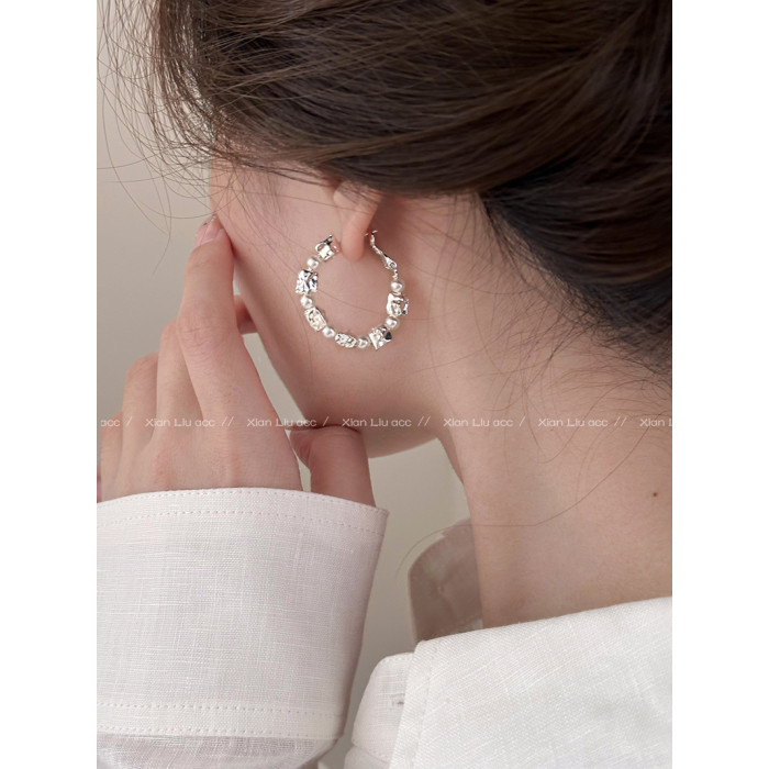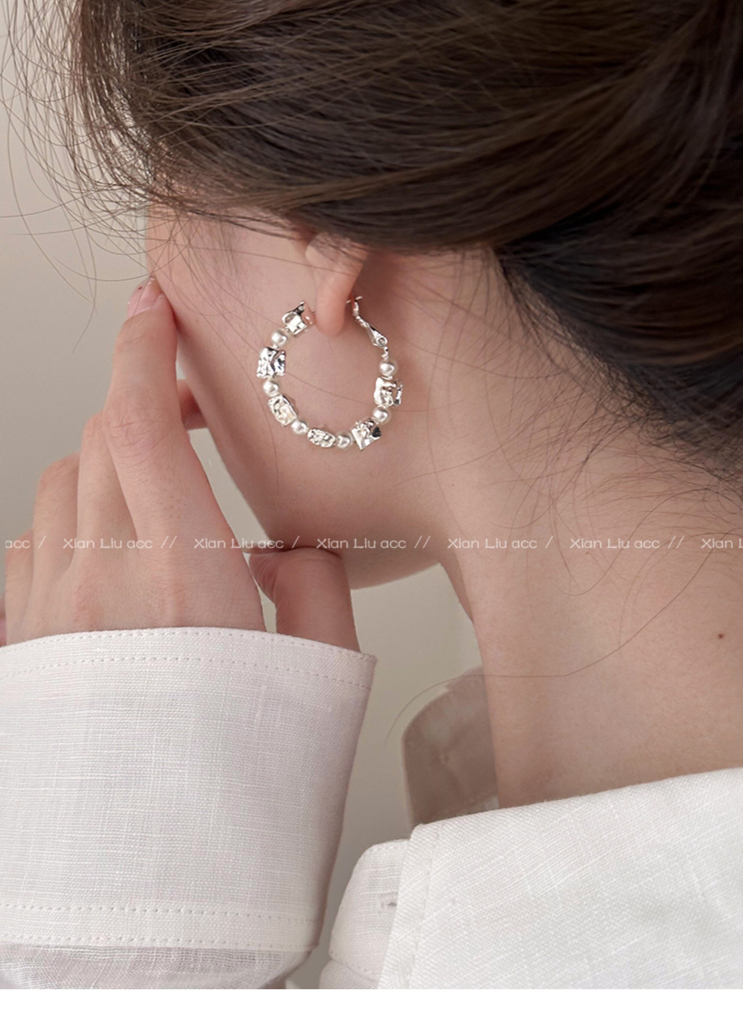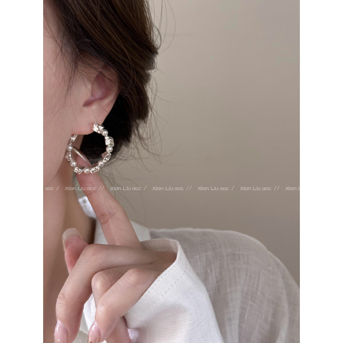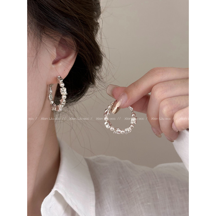 小衆獨特熔巖珍珠圈圈耳環2026新款爆款高級感耳釘女百搭耳圈耳飾