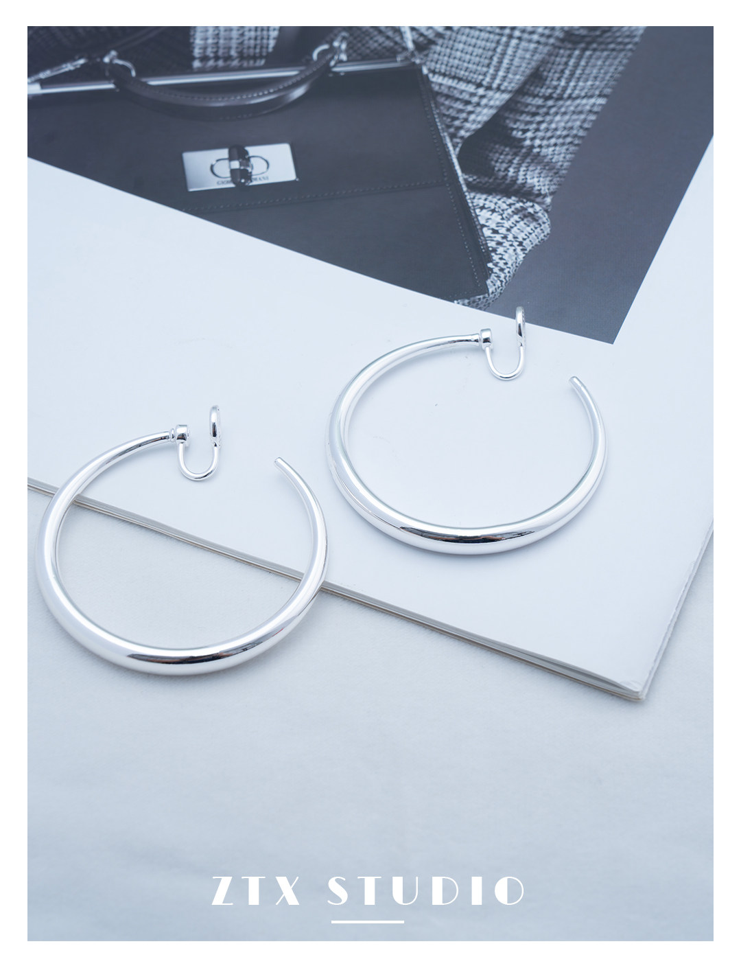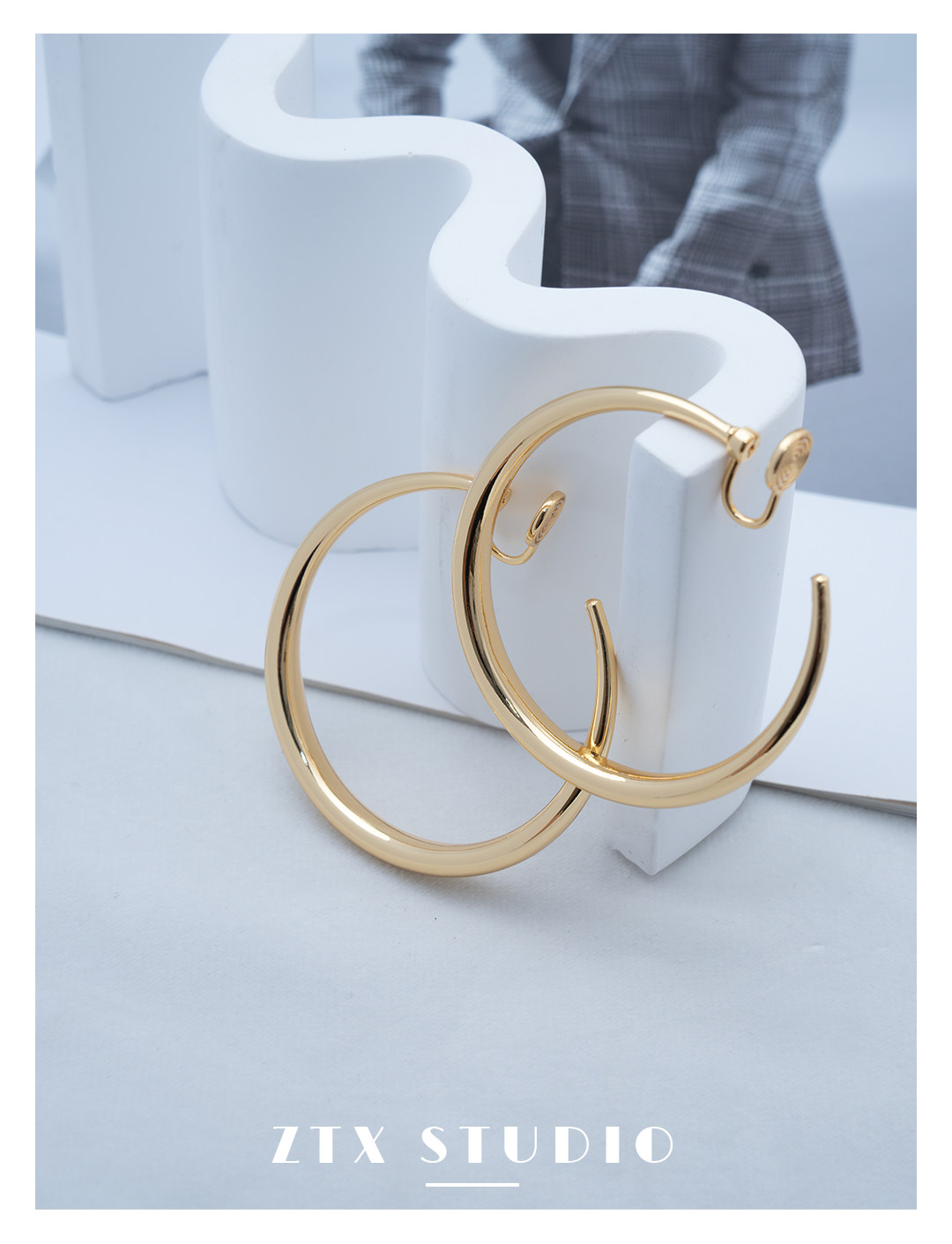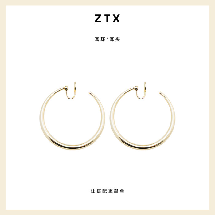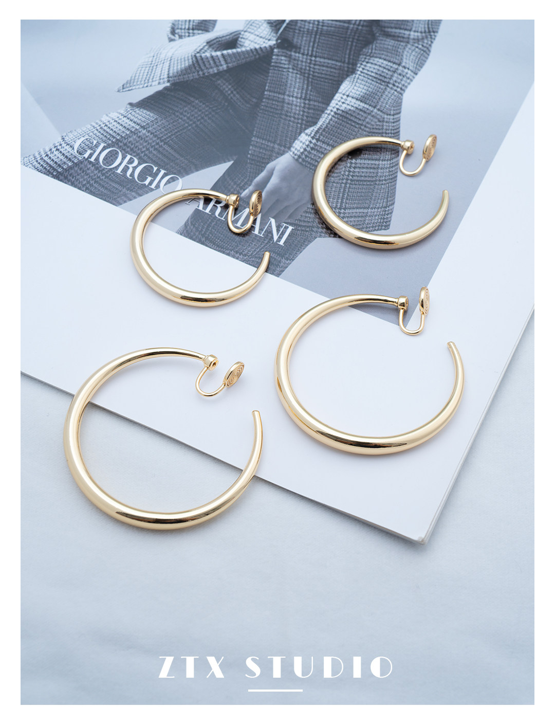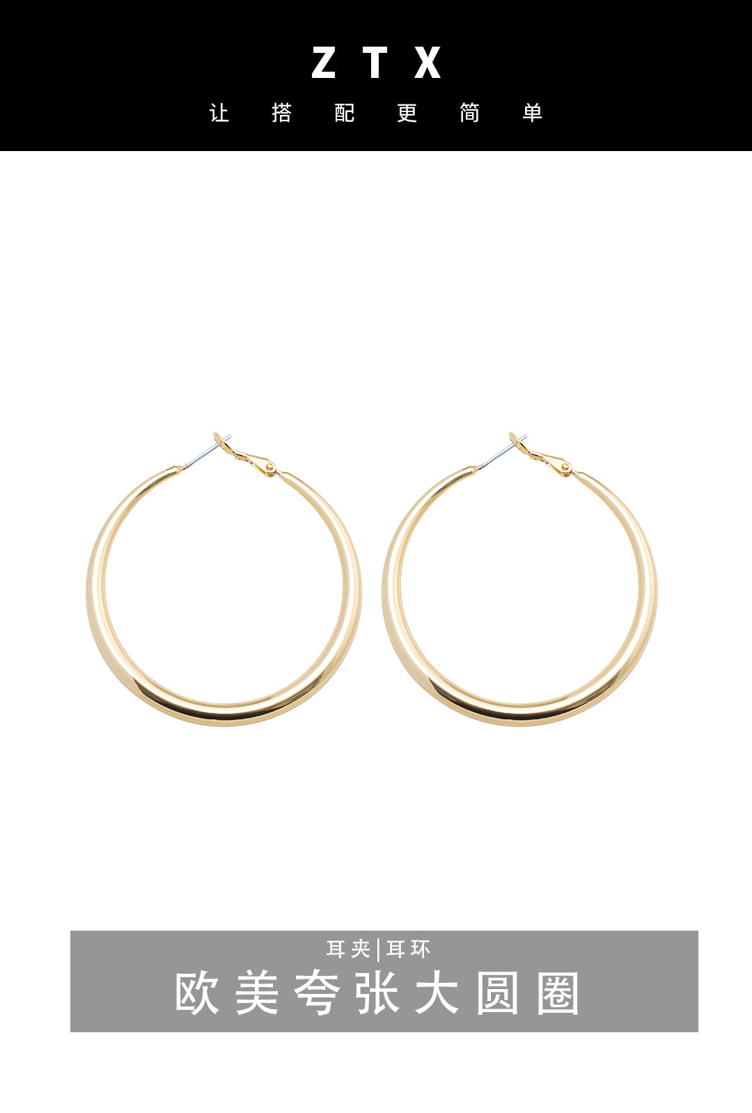 ZTX 歐美誇張素圈耳夾無耳洞女新款大耳圈耳飾蚊香盤金色圓圈耳環