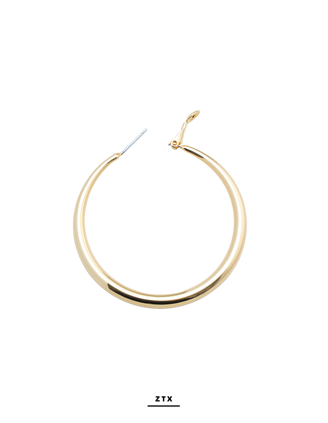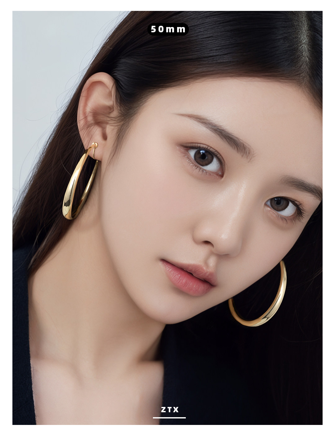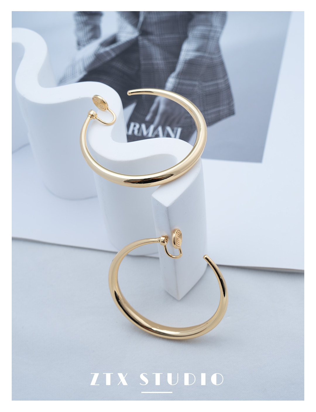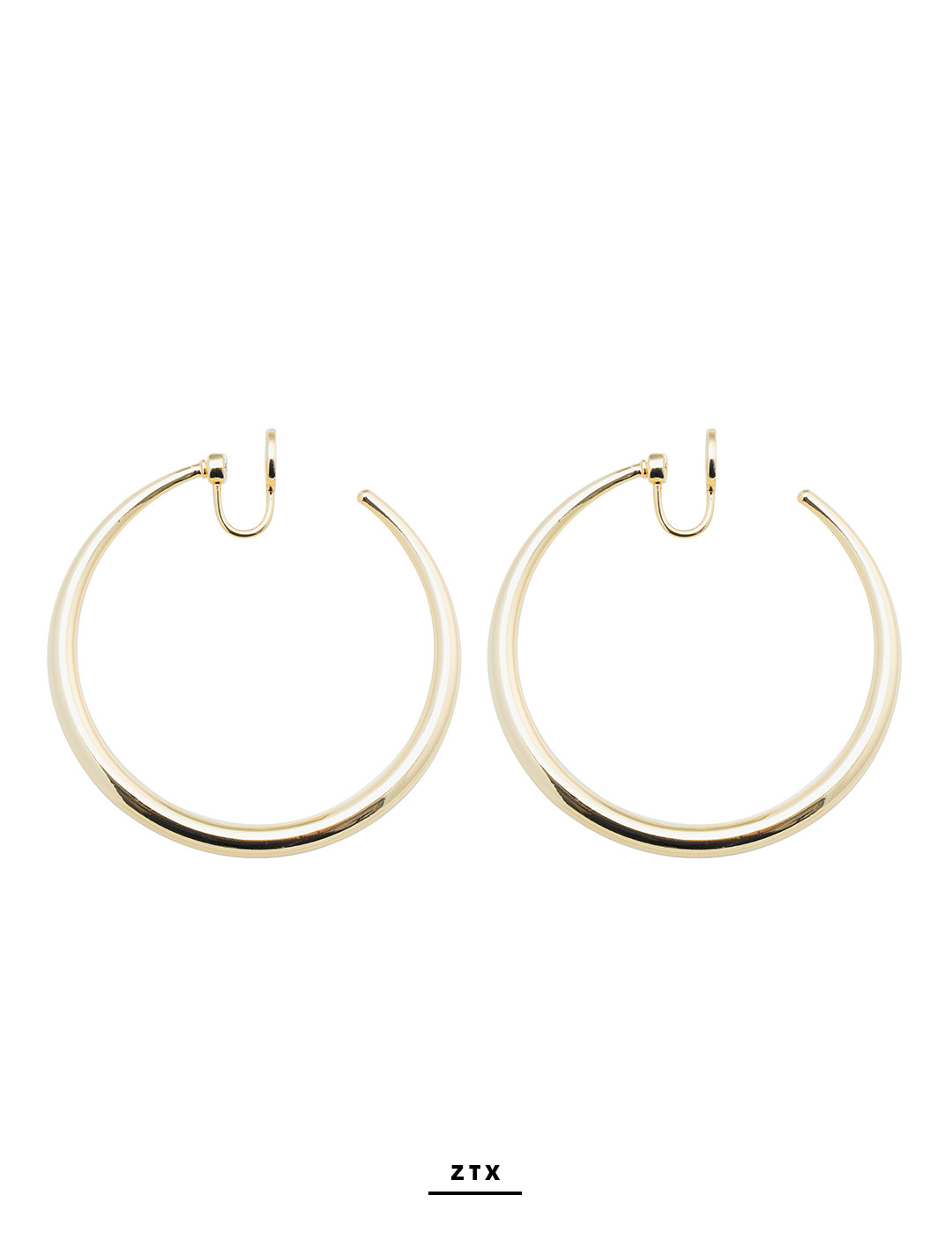 ZTX 歐美誇張素圈耳夾無耳洞女新款大耳圈耳飾蚊香盤金色圓圈耳環