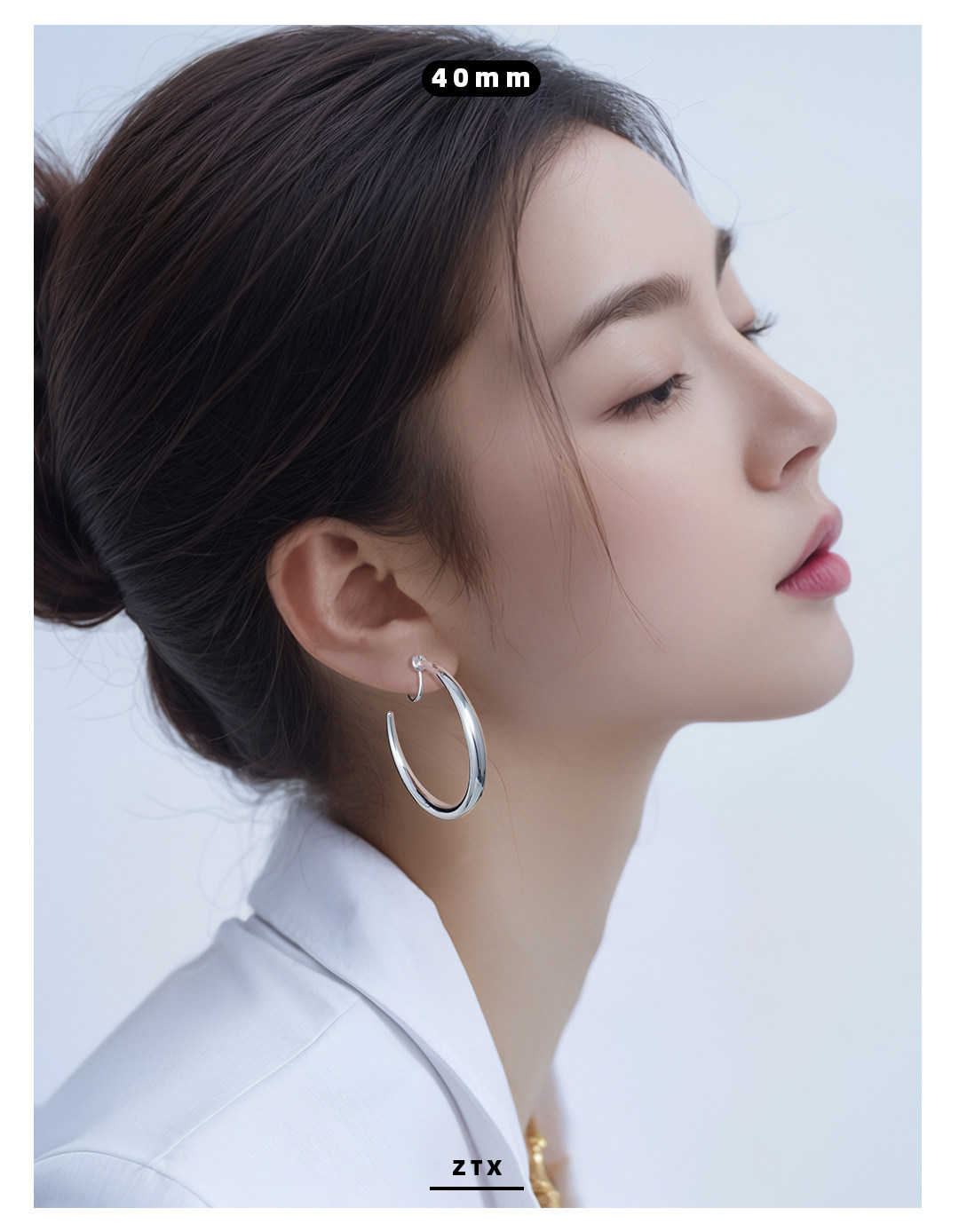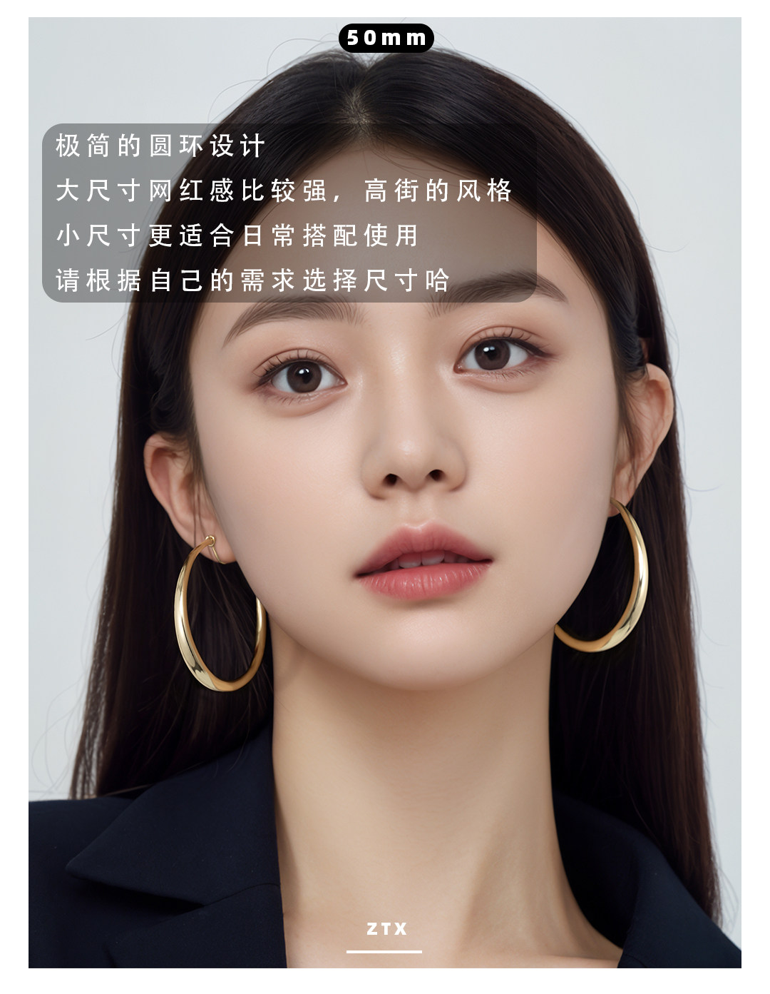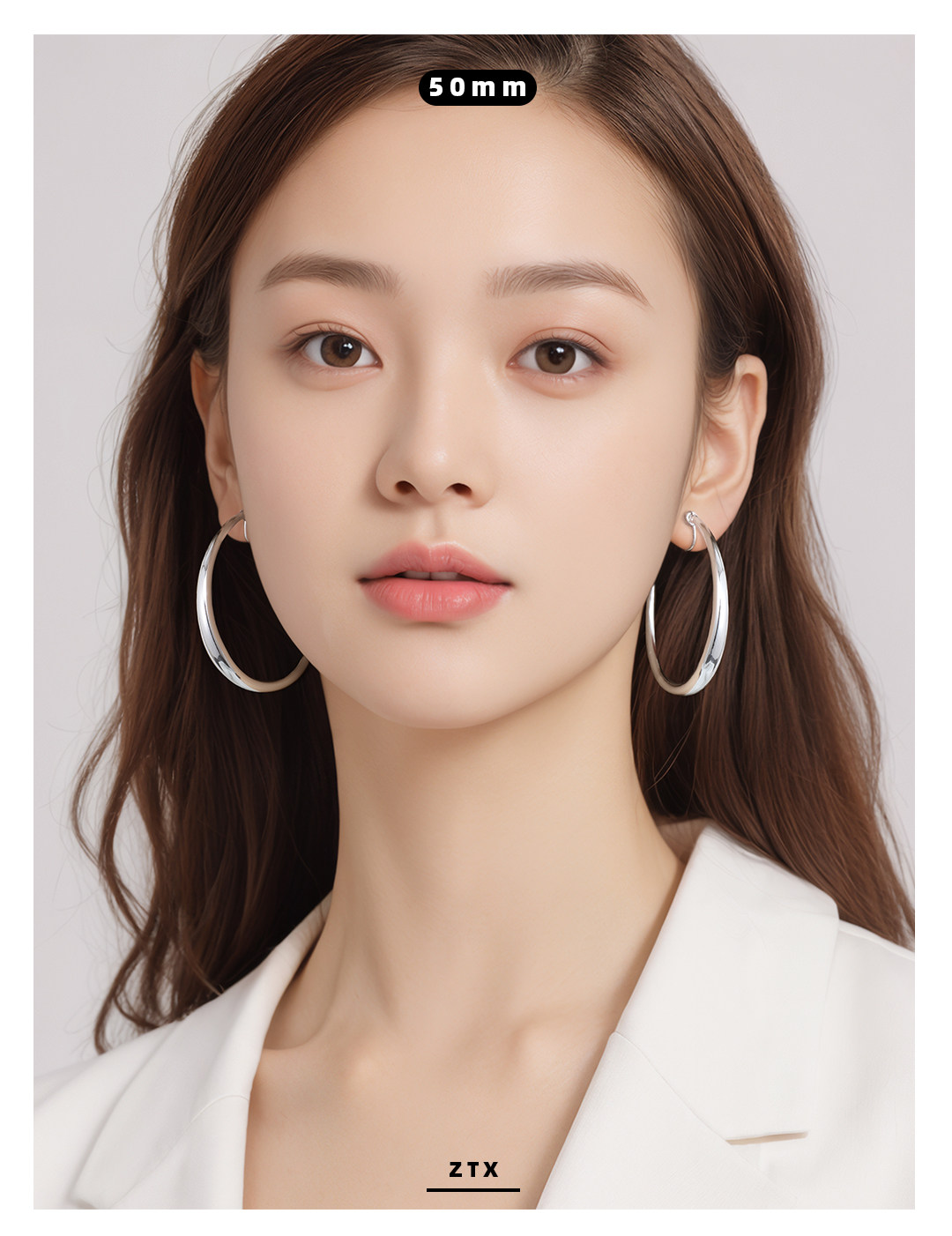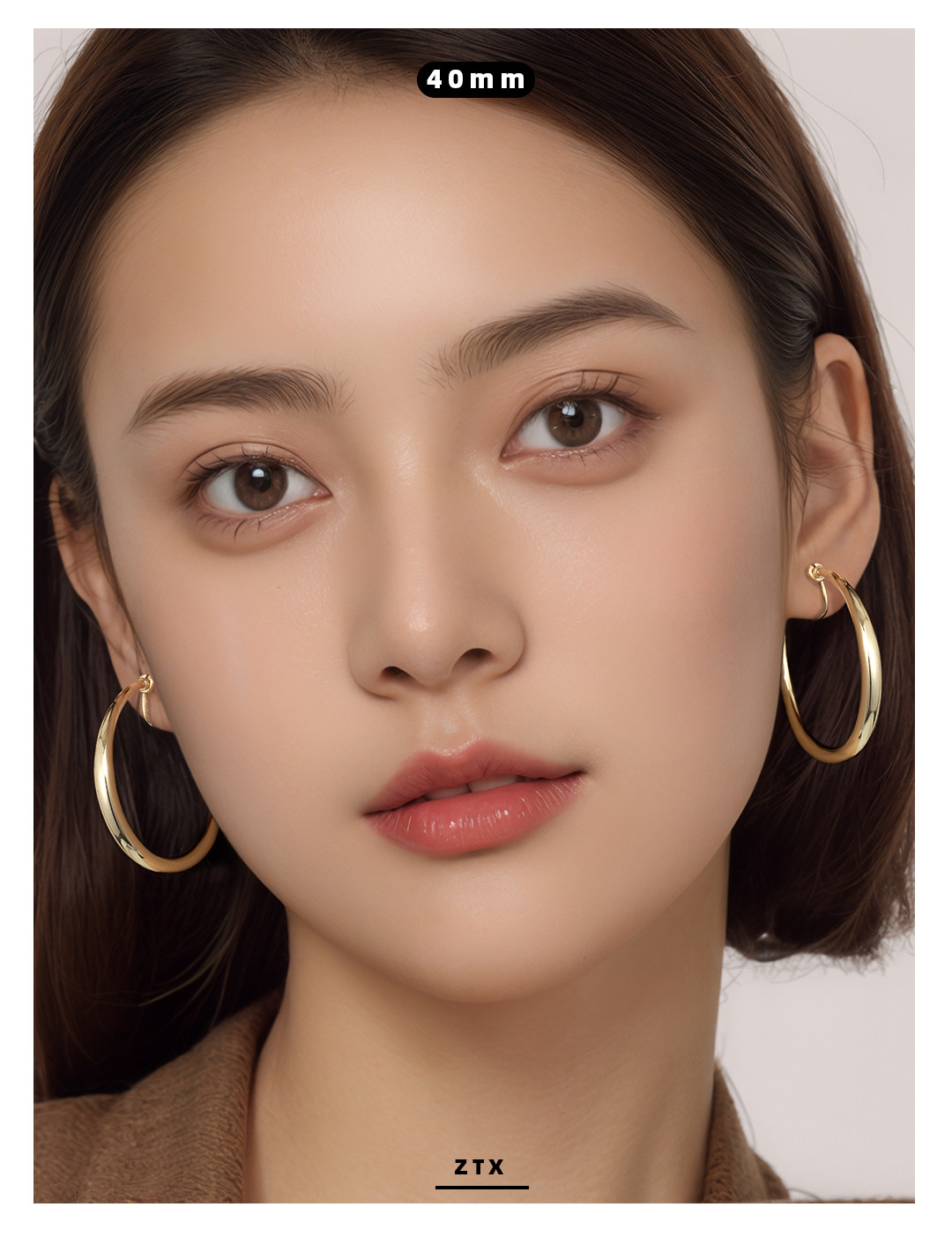 ZTX 歐美誇張素圈耳夾無耳洞女新款大耳圈耳飾蚊香盤金色圓圈耳環