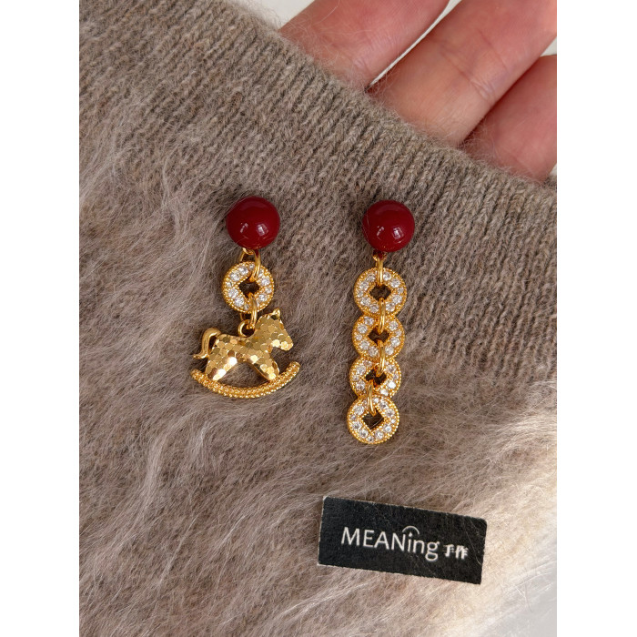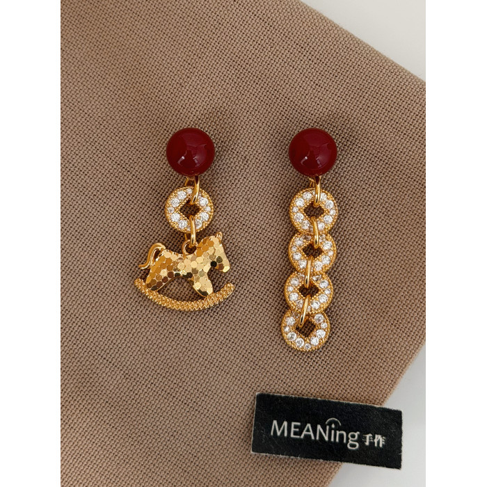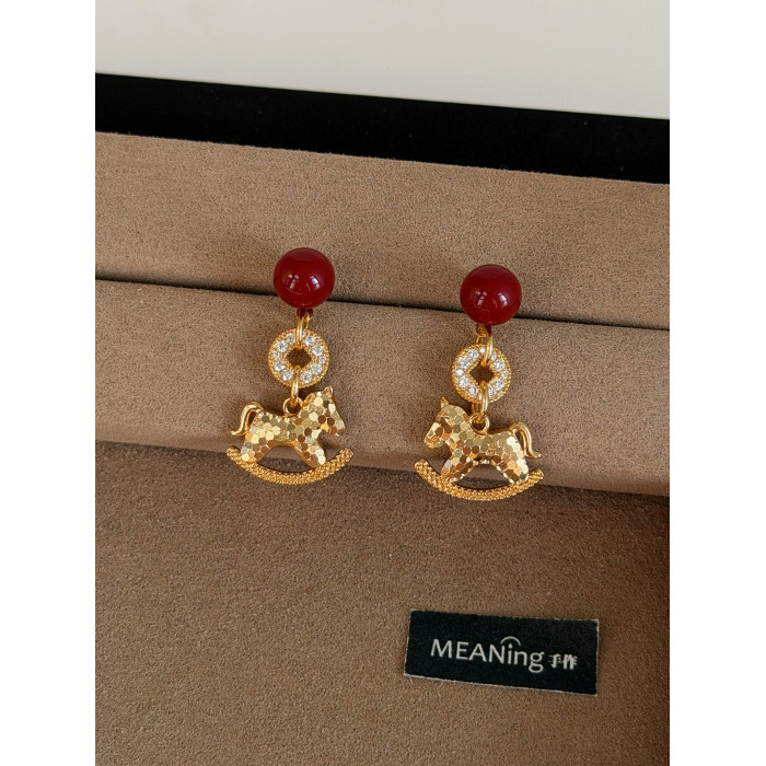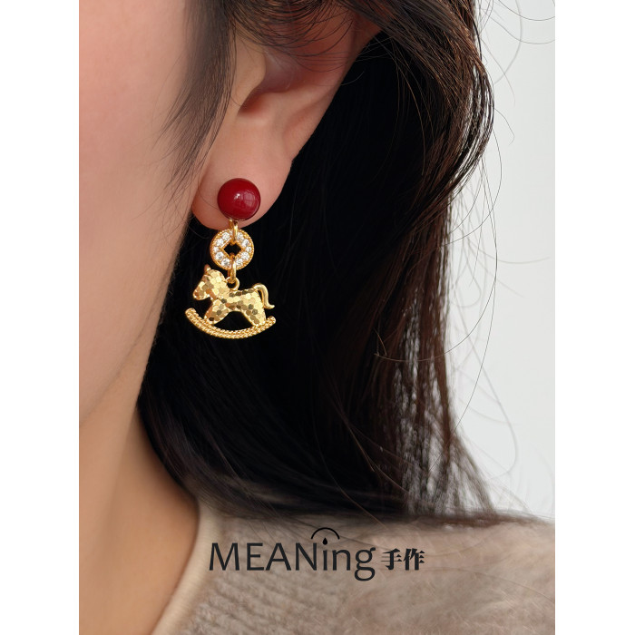 【馬年新品】馬上有錢紅色小馬耳環輕奢貴氣小衆高級新年過年耳飾