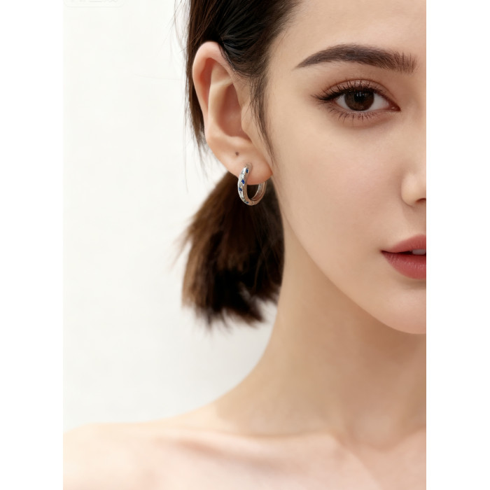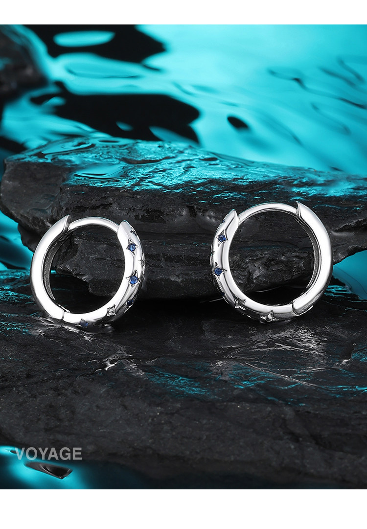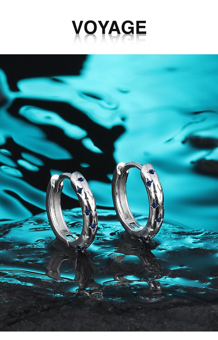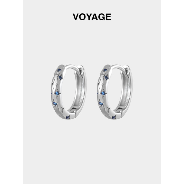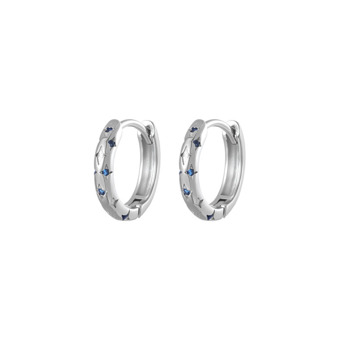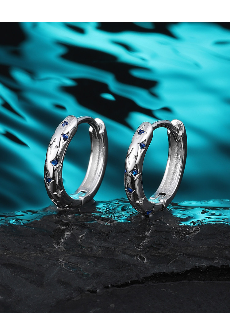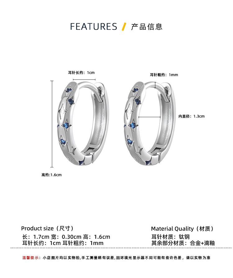碧藍四芒星耳環女鈦合金耳圈輕奢小衆男耳釦鈦鋼圈圈素圈耳釘耳飾