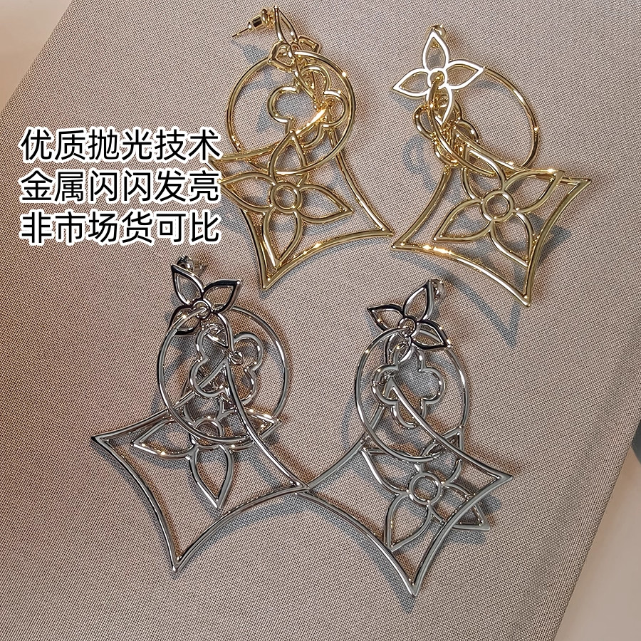 歐陽娜娜同款復古鏤空菱形耳環女輕奢高級感獨特誇張耳釘金色耳飾