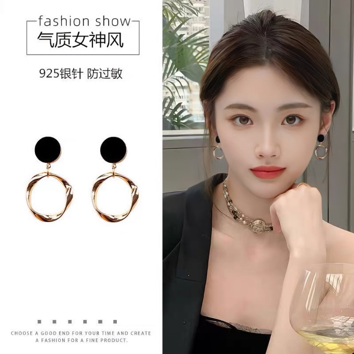 黑色圓圈耳環耳釘女純銀2026新款爆款高級感氣質巨好看耳飾春夏