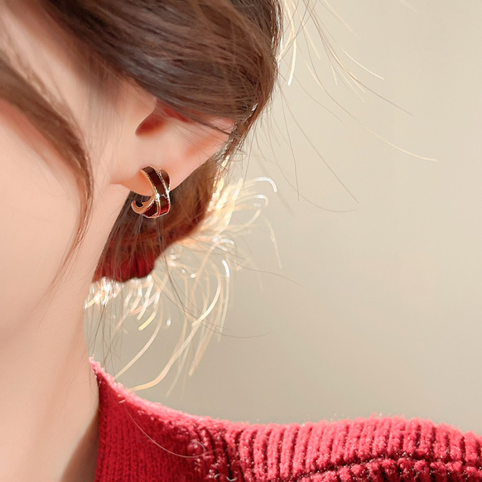紅色氣質大氣交叉耳釘女2026新款爆款耳環輕奢高級感小衆設計耳飾