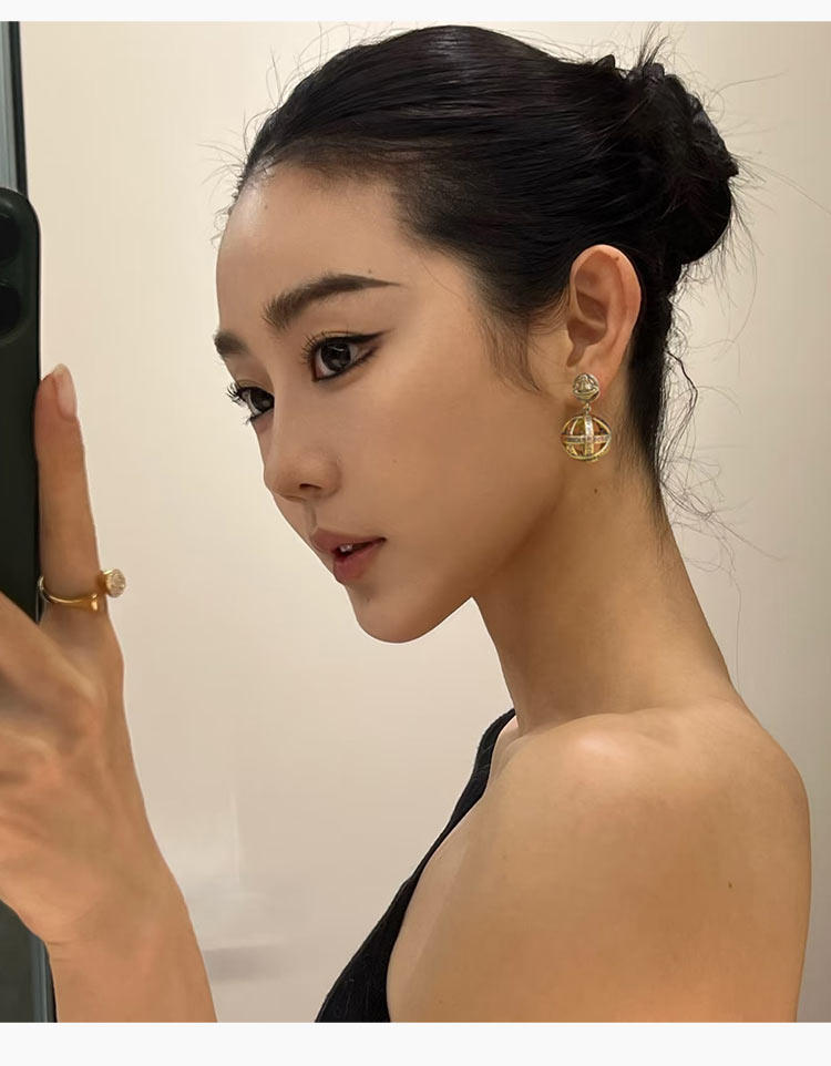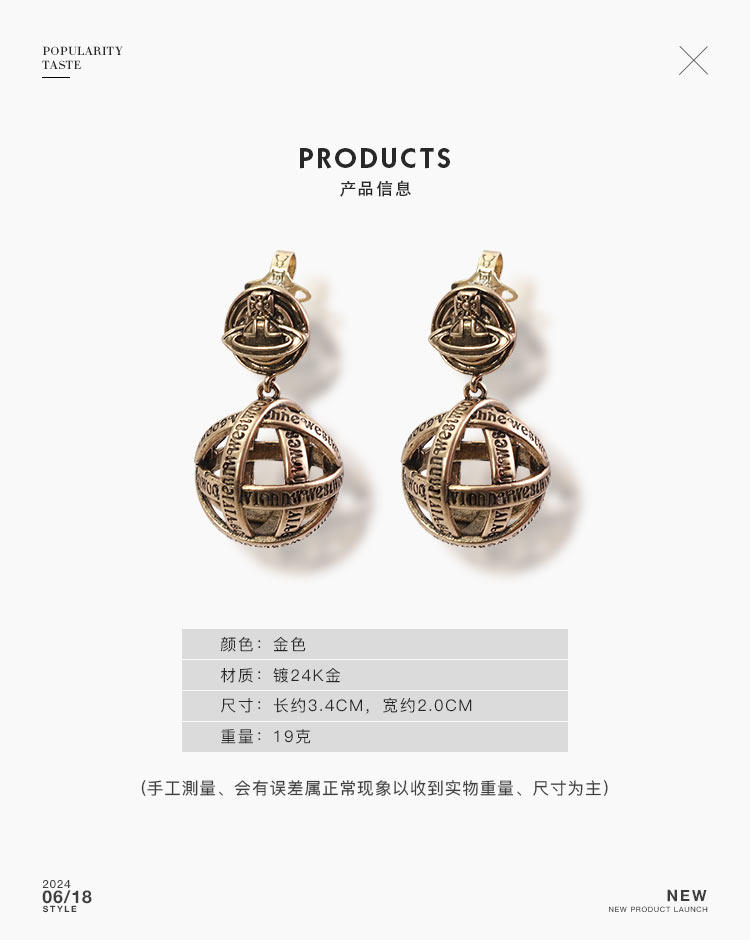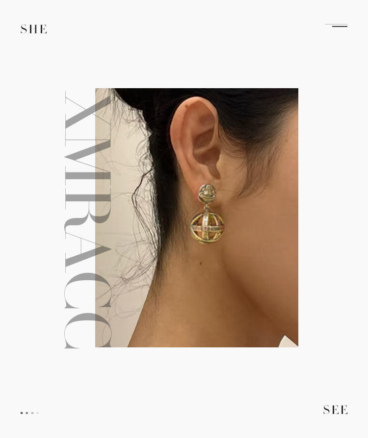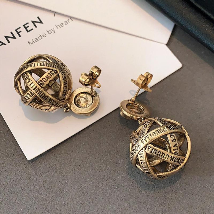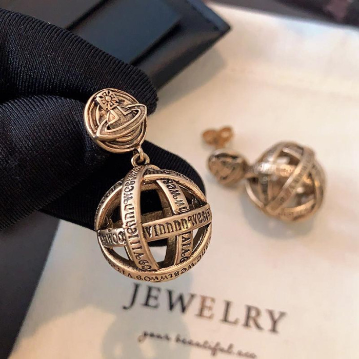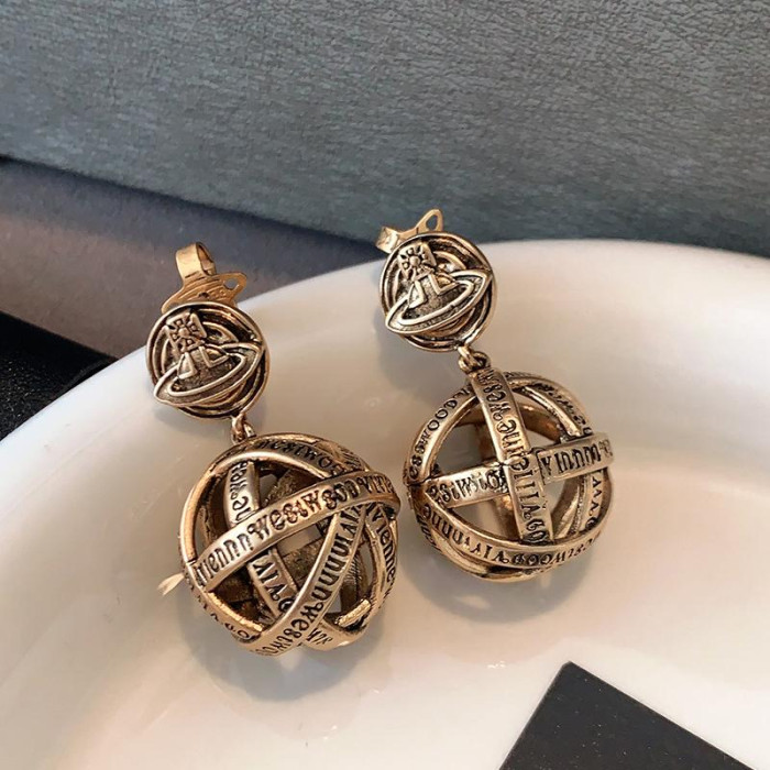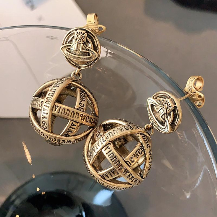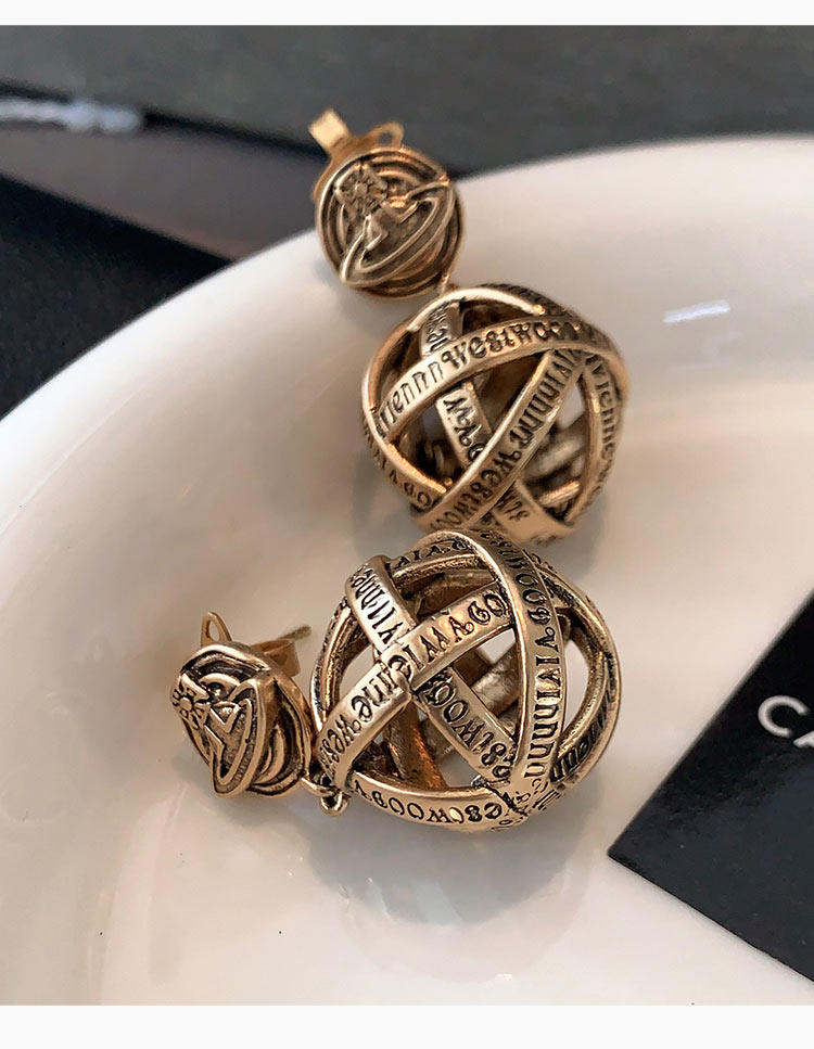 西太後字母球球耳墜2026新款爆款土星耳釘輕奢高級感龐克復古耳環