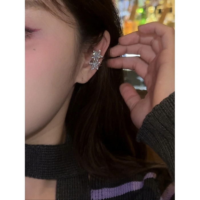 銅鍍真金仿水晶五芒星耳骨夾可調節輕奢日常通勤甜酷風精緻耳飾女