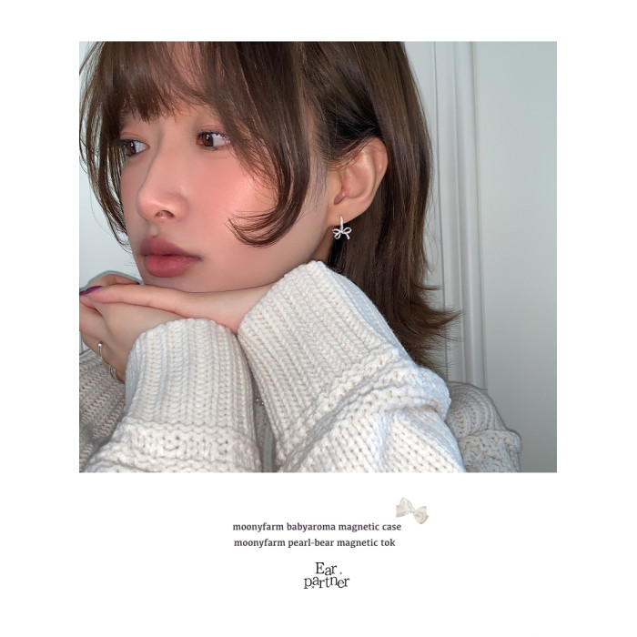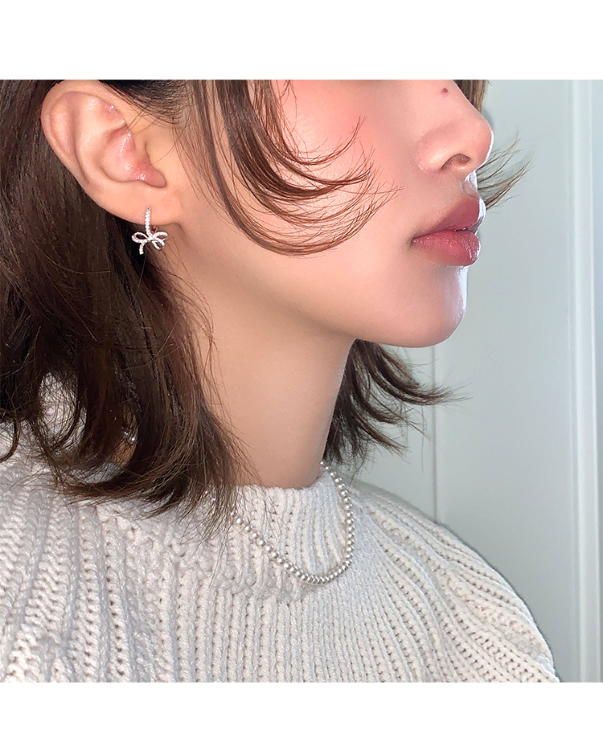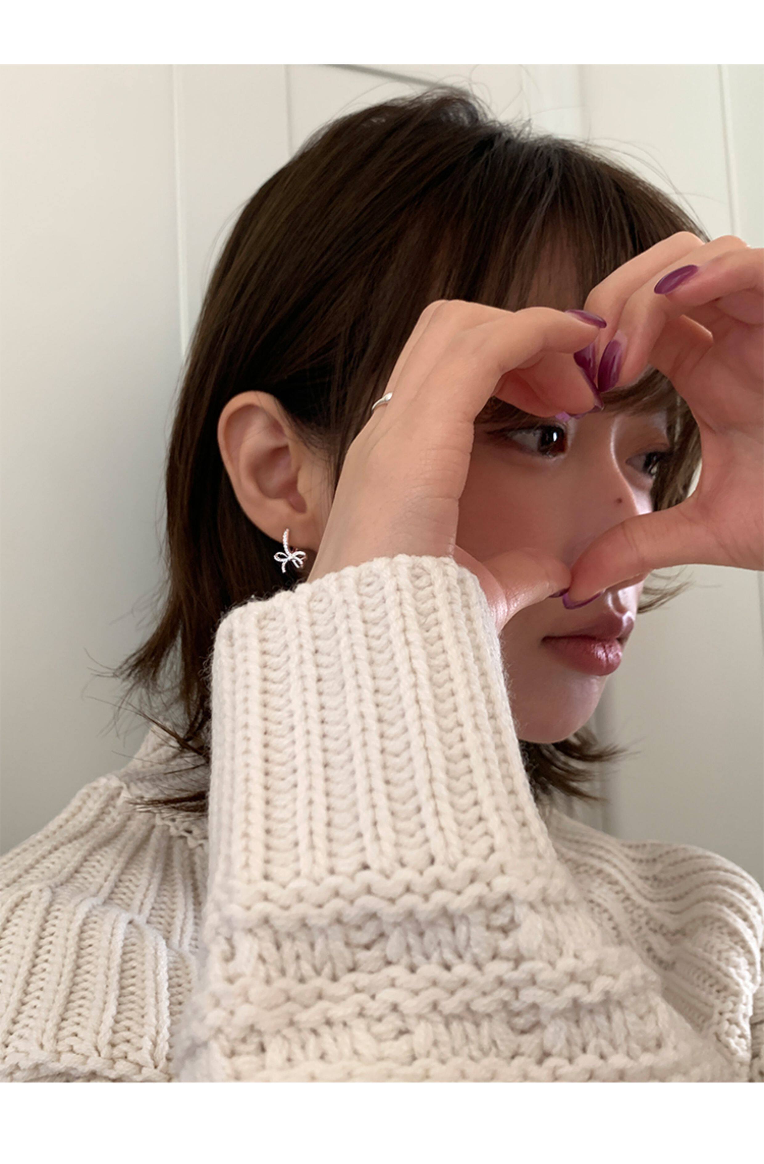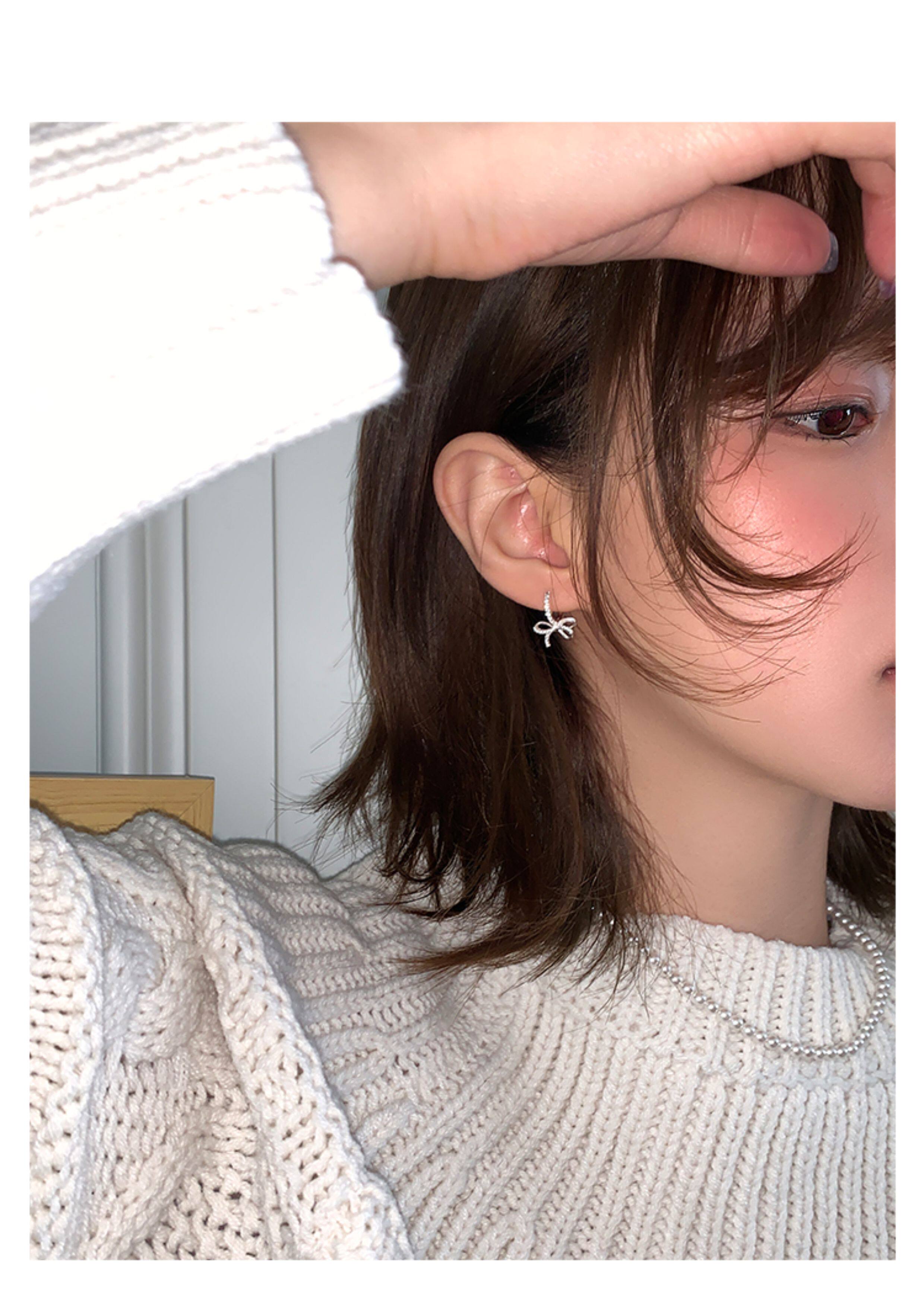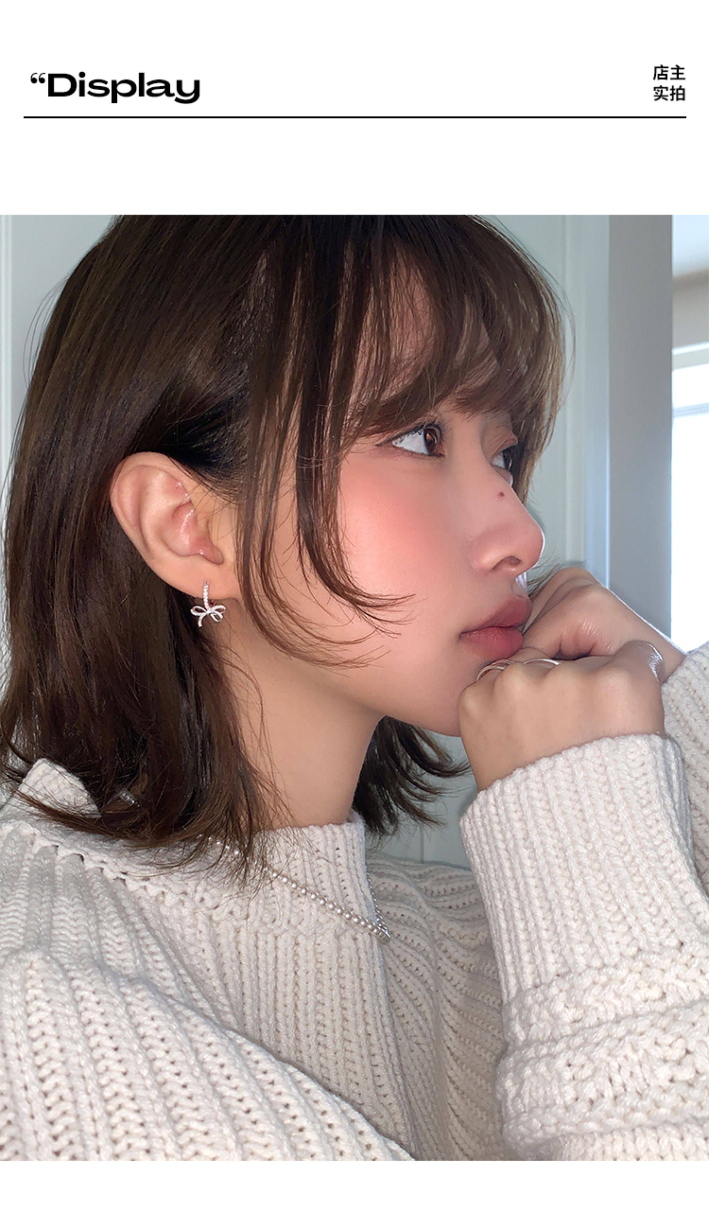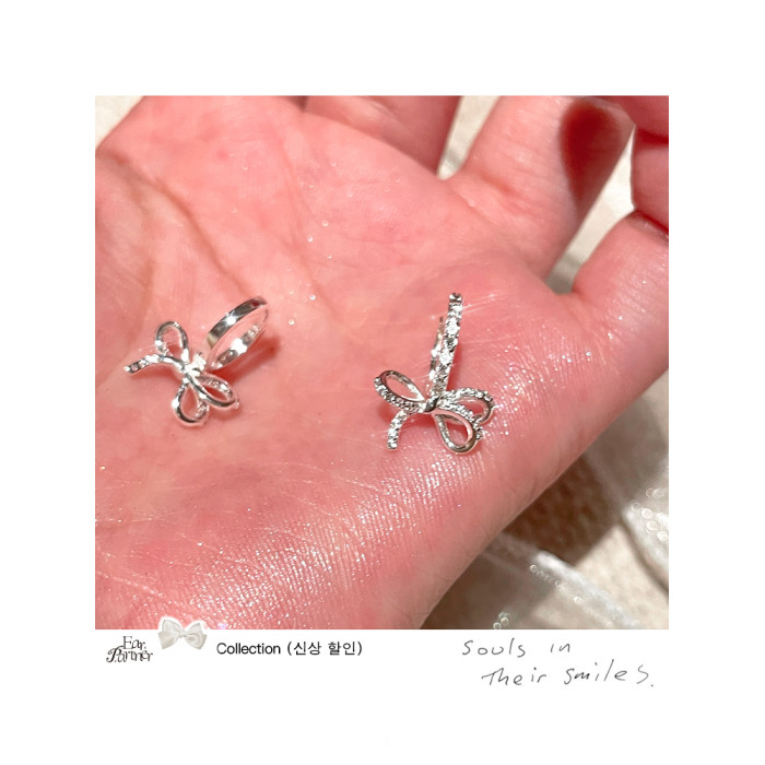 蝴蝶結鑲鑽鋯石耳環女款輕奢小衆設計感高級耳圈耳釦耳釘銀針耳飾