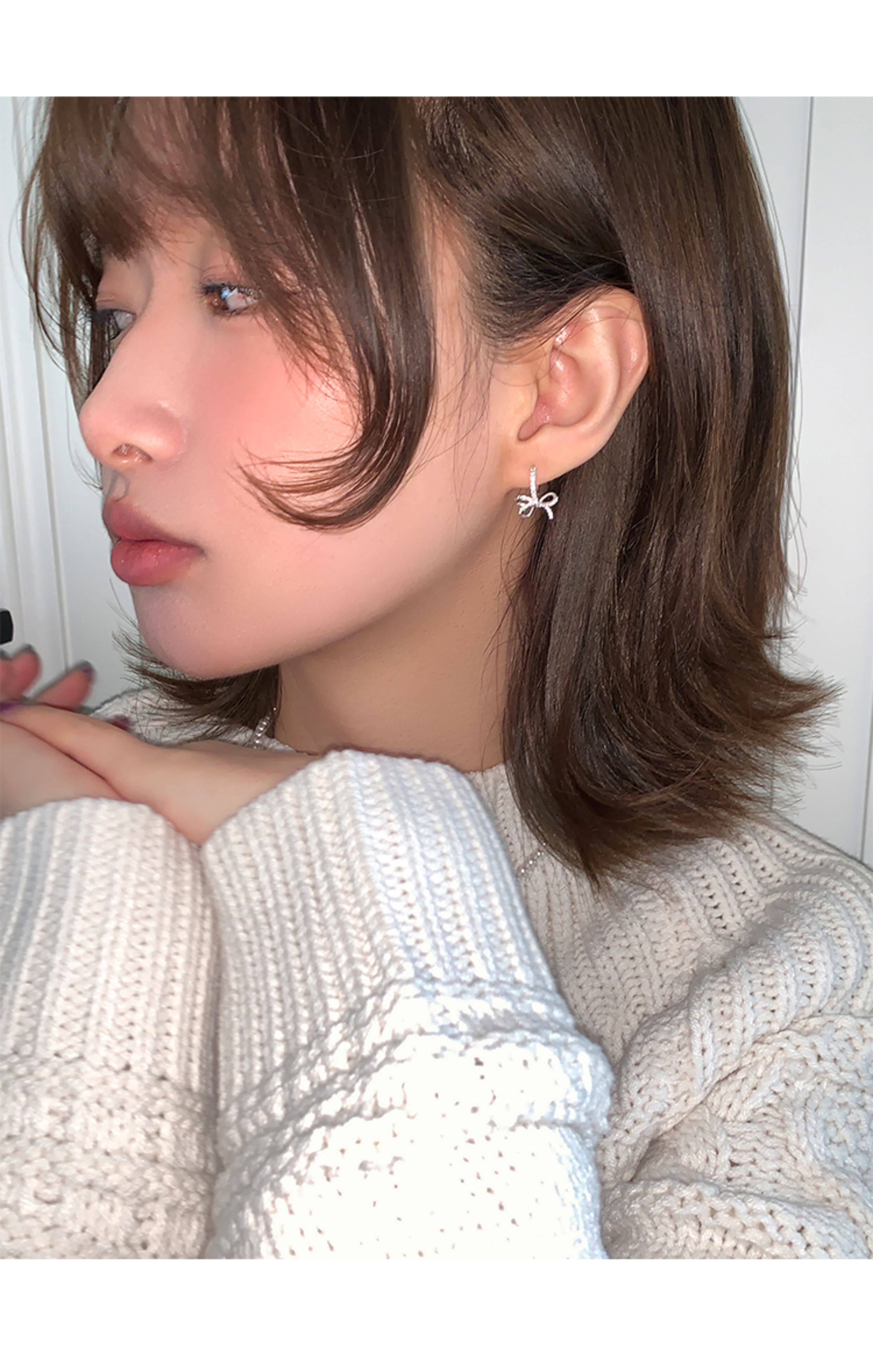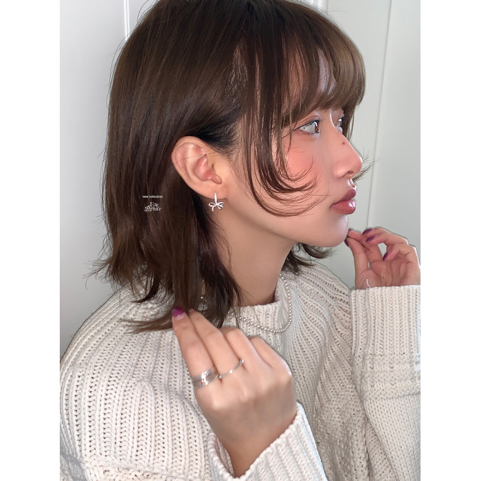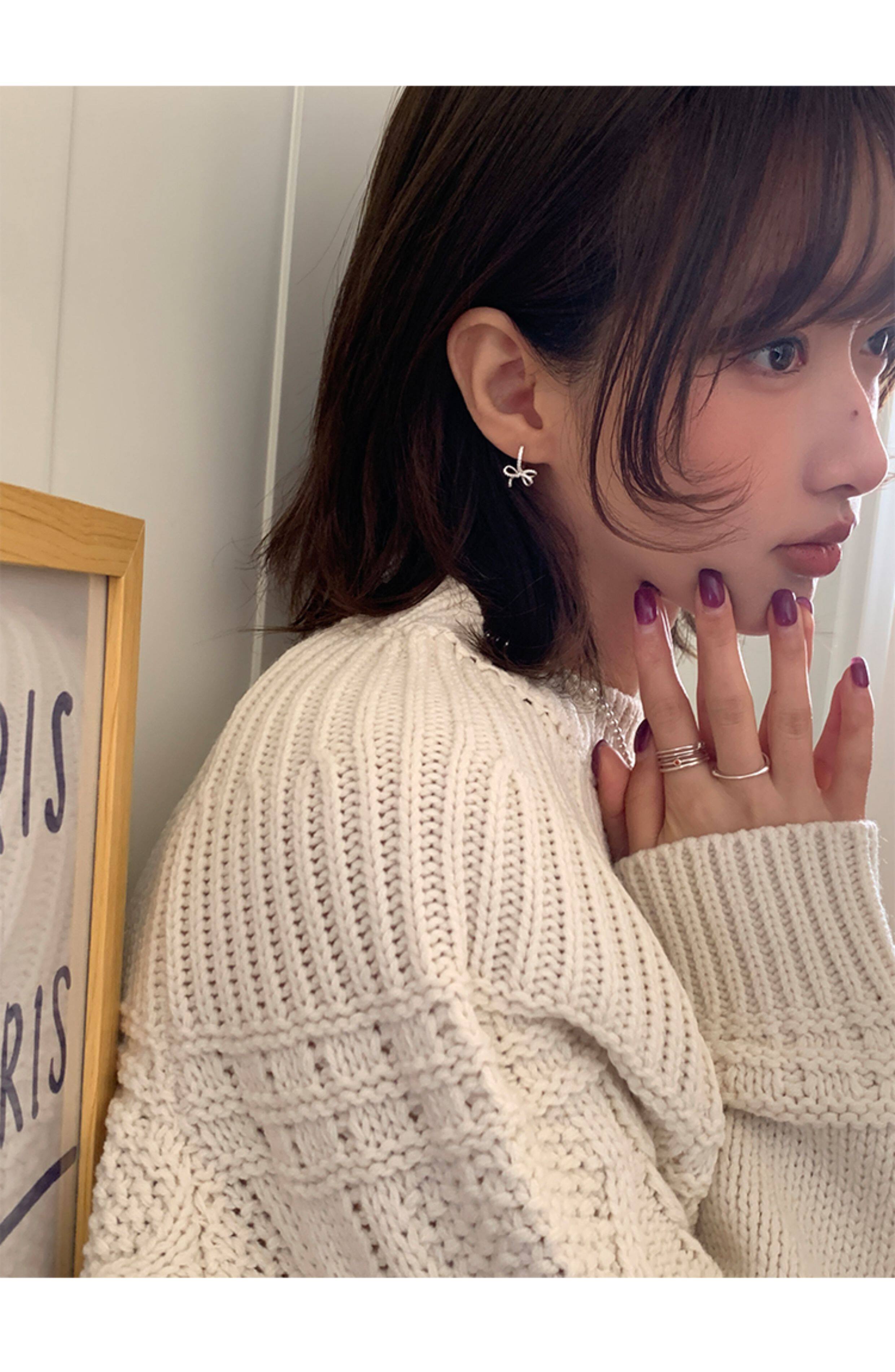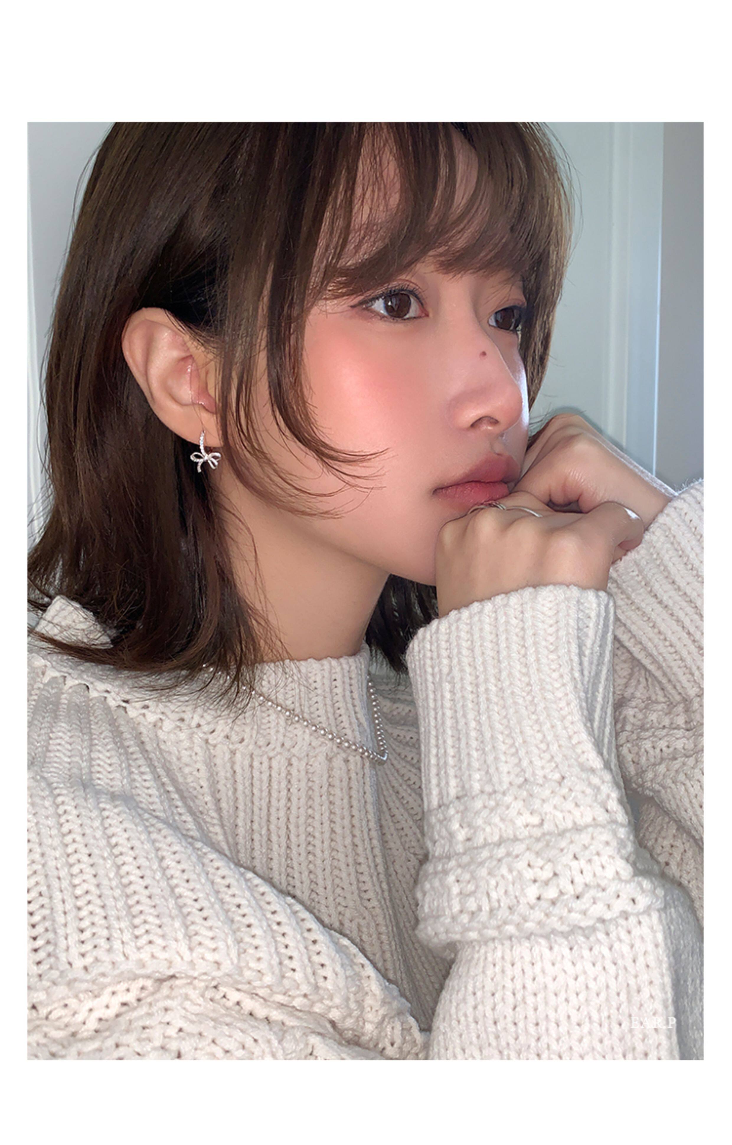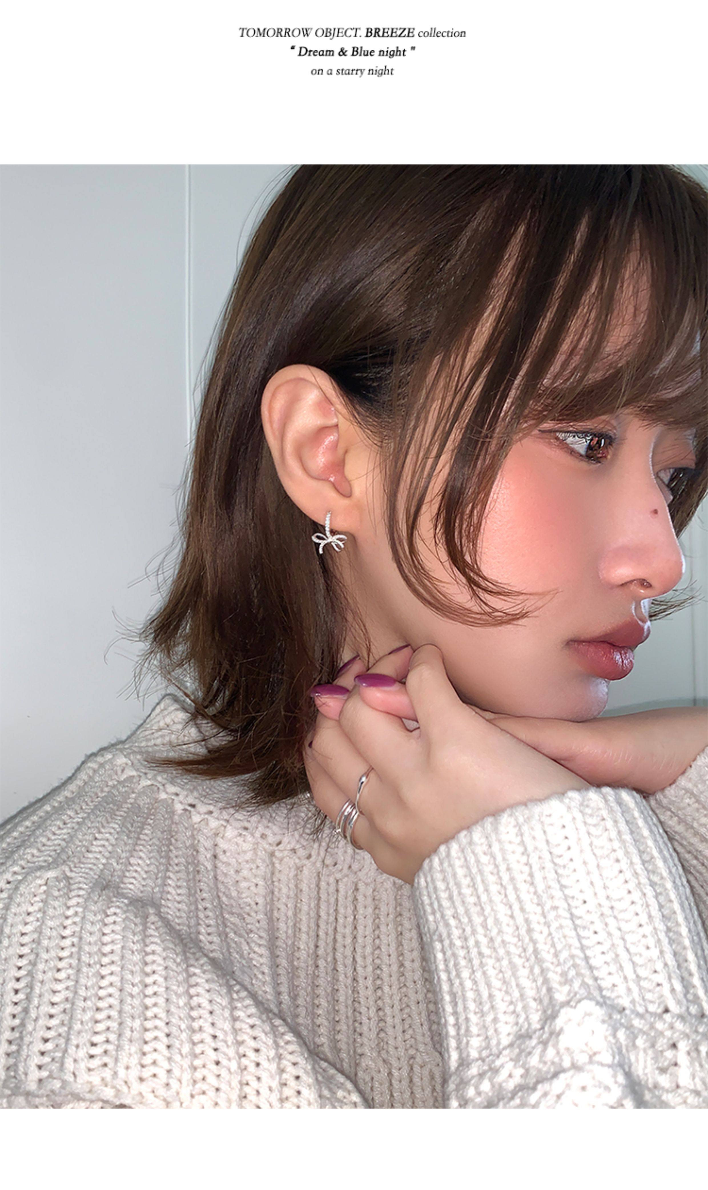 蝴蝶結鑲鑽鋯石耳環女款輕奢小衆設計感高級耳圈耳釦耳釘銀針耳飾