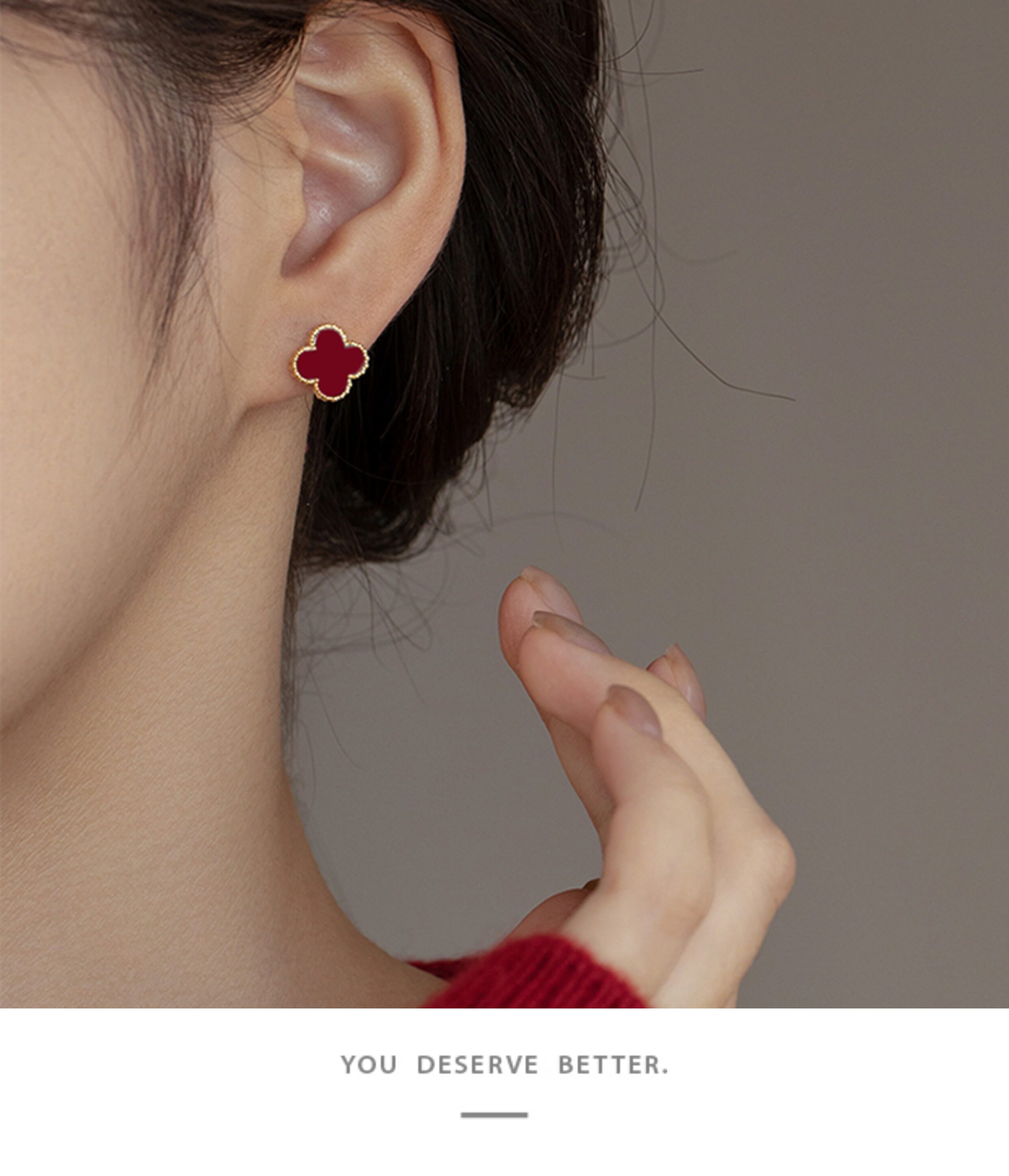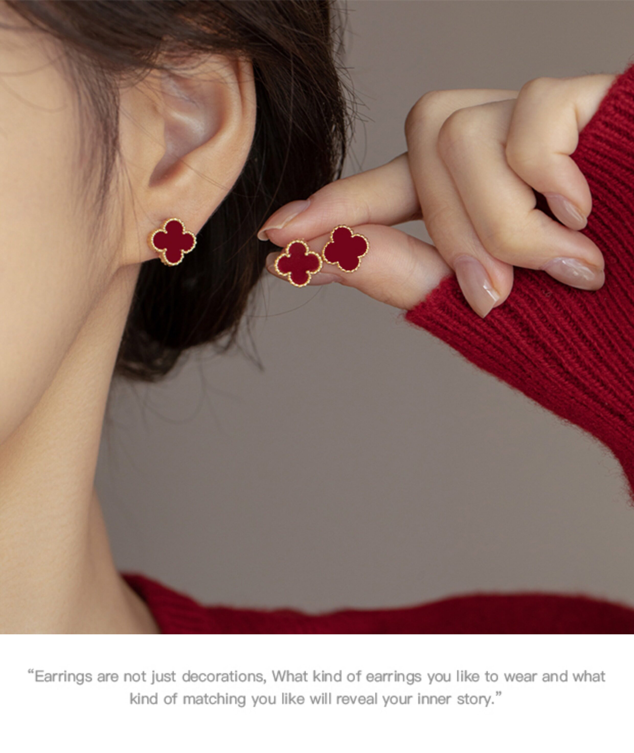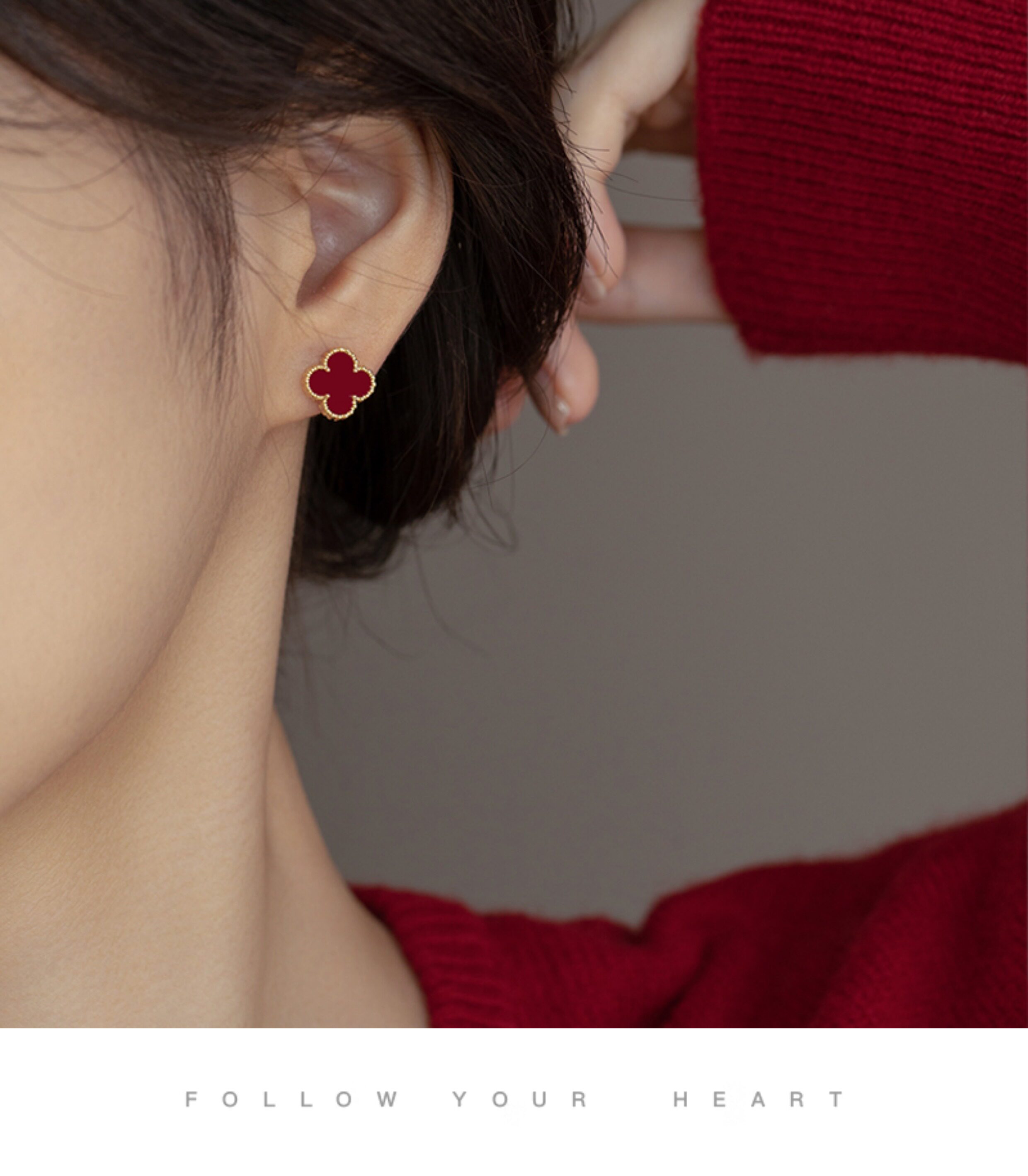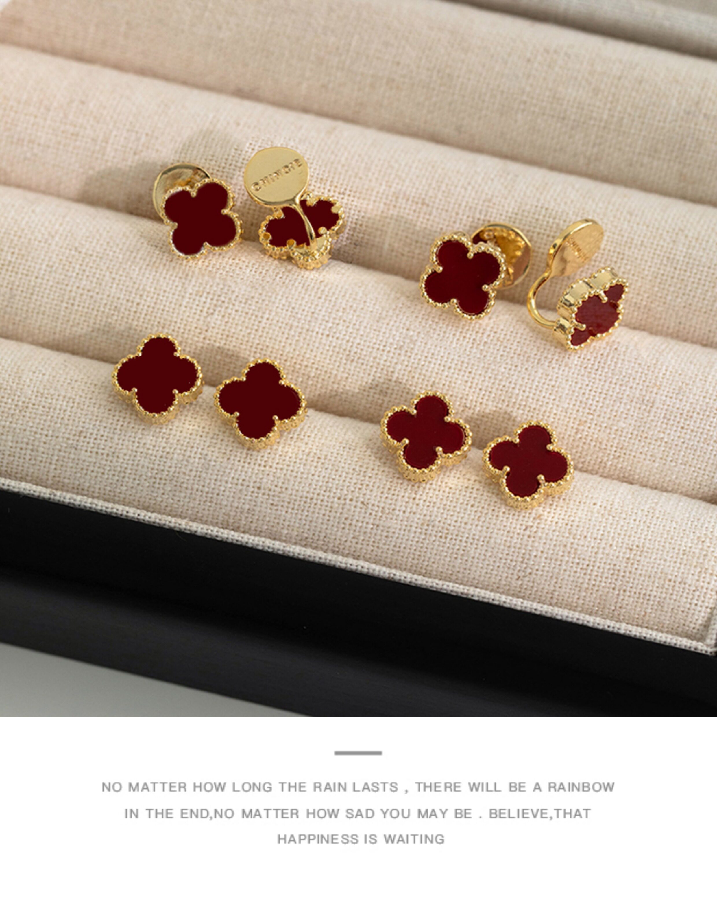 紅色四葉草長流蘇耳飾輕奢高級感蚊香盤耳夾女無耳洞雙戴耳環耳釘