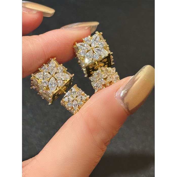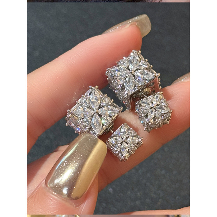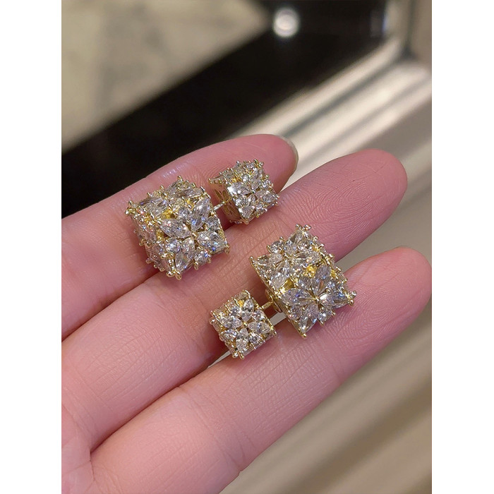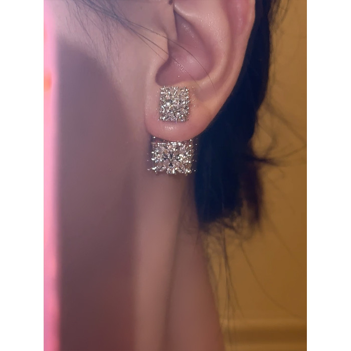 星冕◆閃爆了 小方糖s925耳釘耳環女輕奢高級感閃鑽婚禮宴會耳飾
