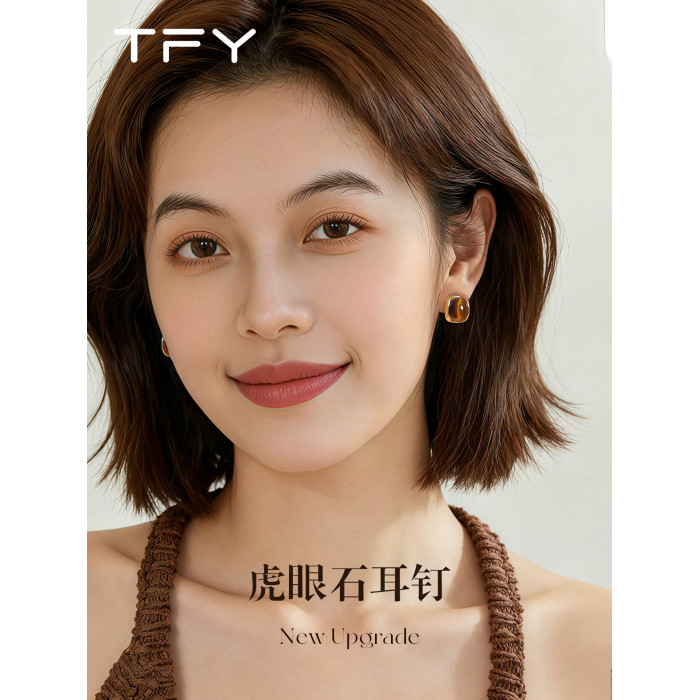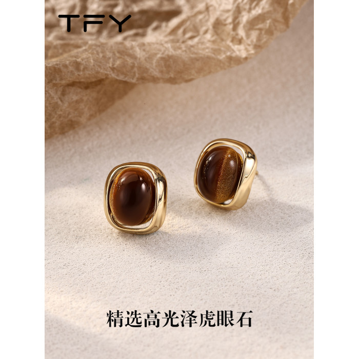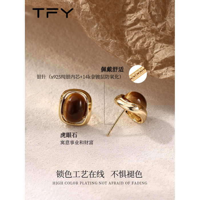 秋冬美拉德虎眼石耳釘女士精緻小巧巨好看耳環2026新款高級感耳飾