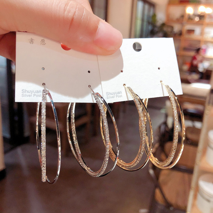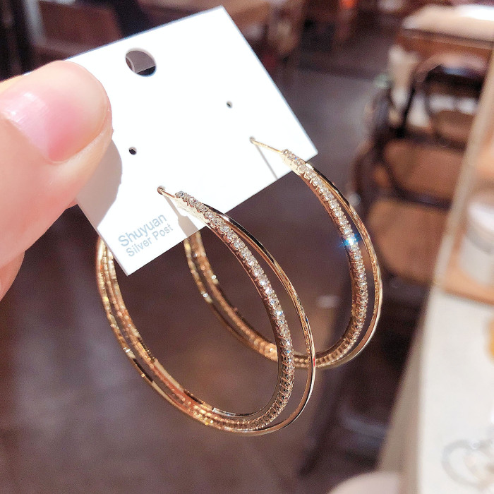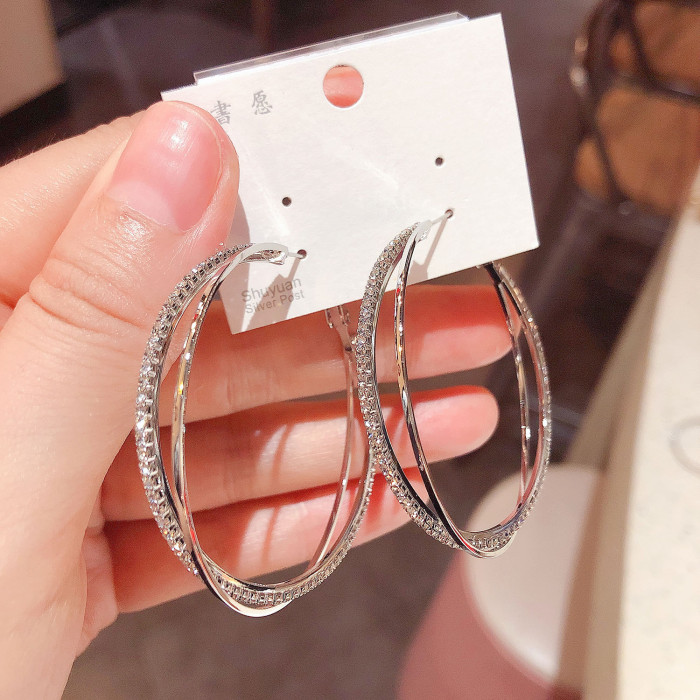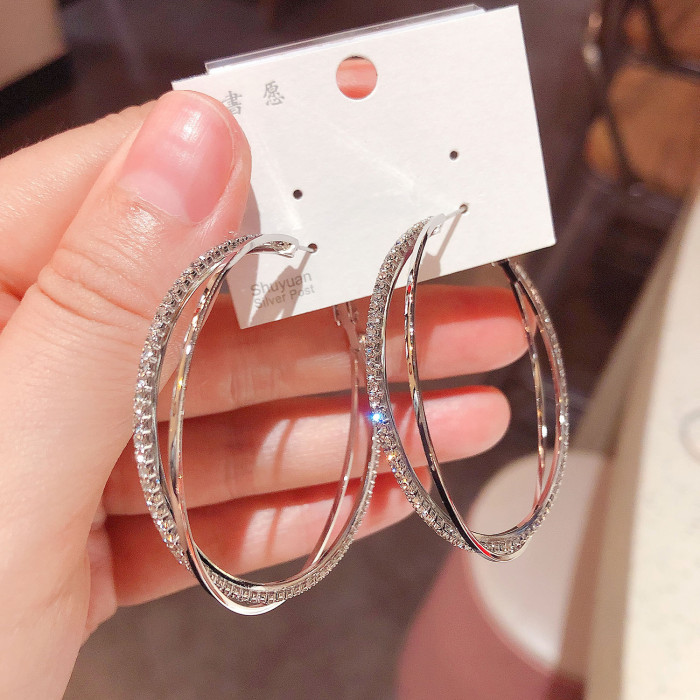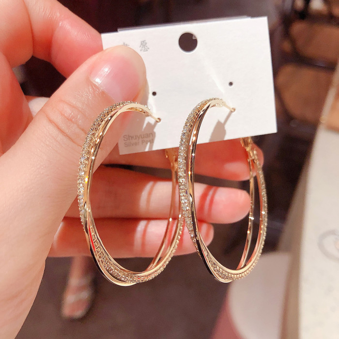 小衆高級感鋯石圈圈交叉耳圈耳環2025年新款潮網紅氣質銀針耳飾女