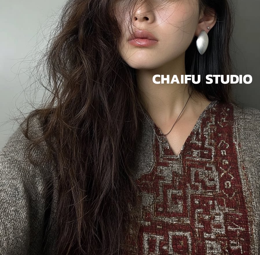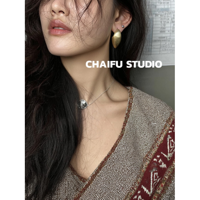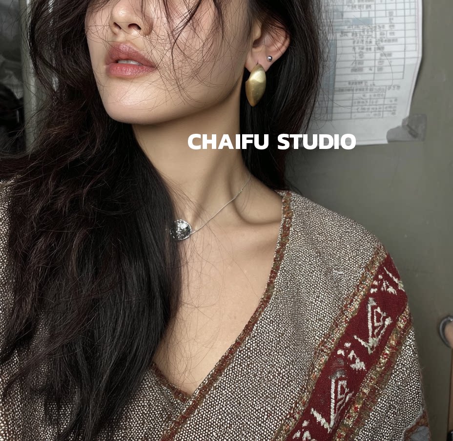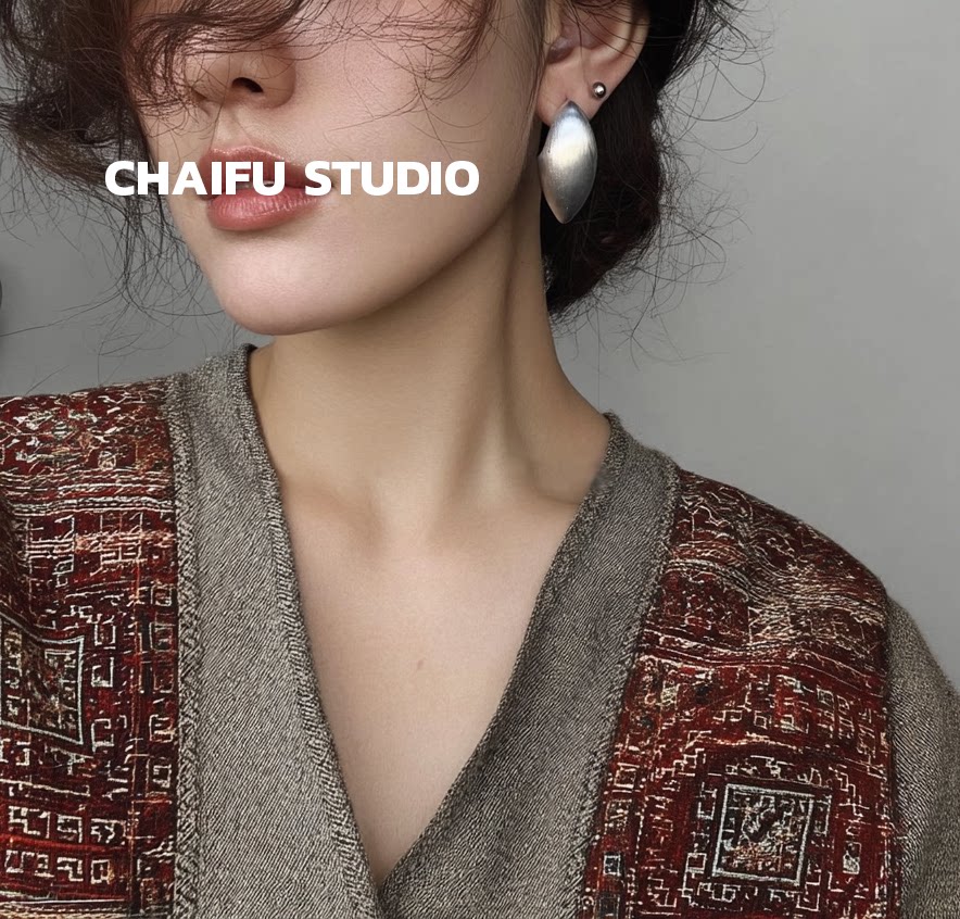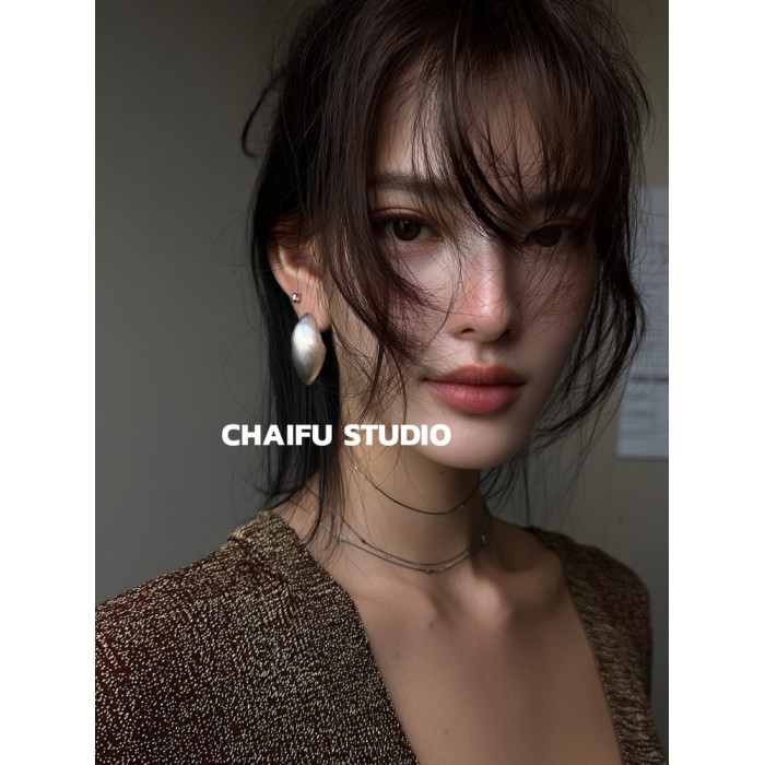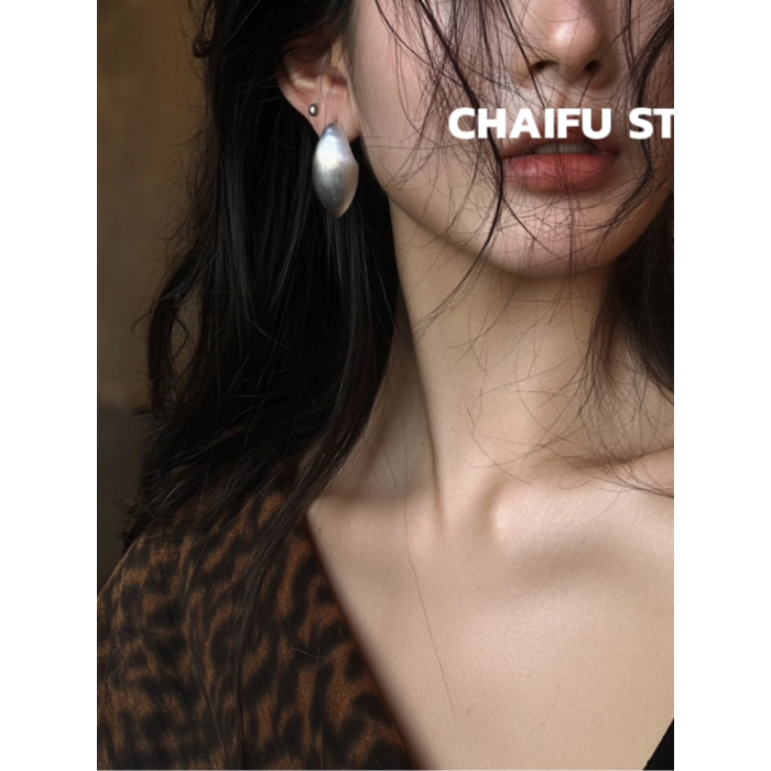柴夫工作室/R562 歐美誇張橢圓金屬拉絲耳釘輕奢冷淡風顯瘦耳環