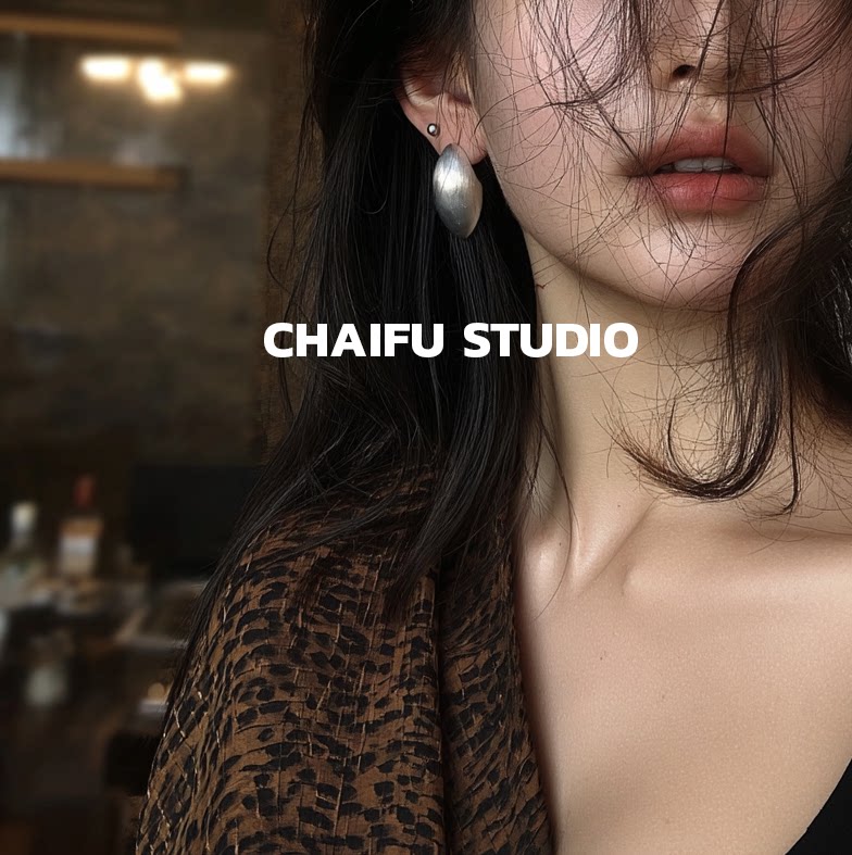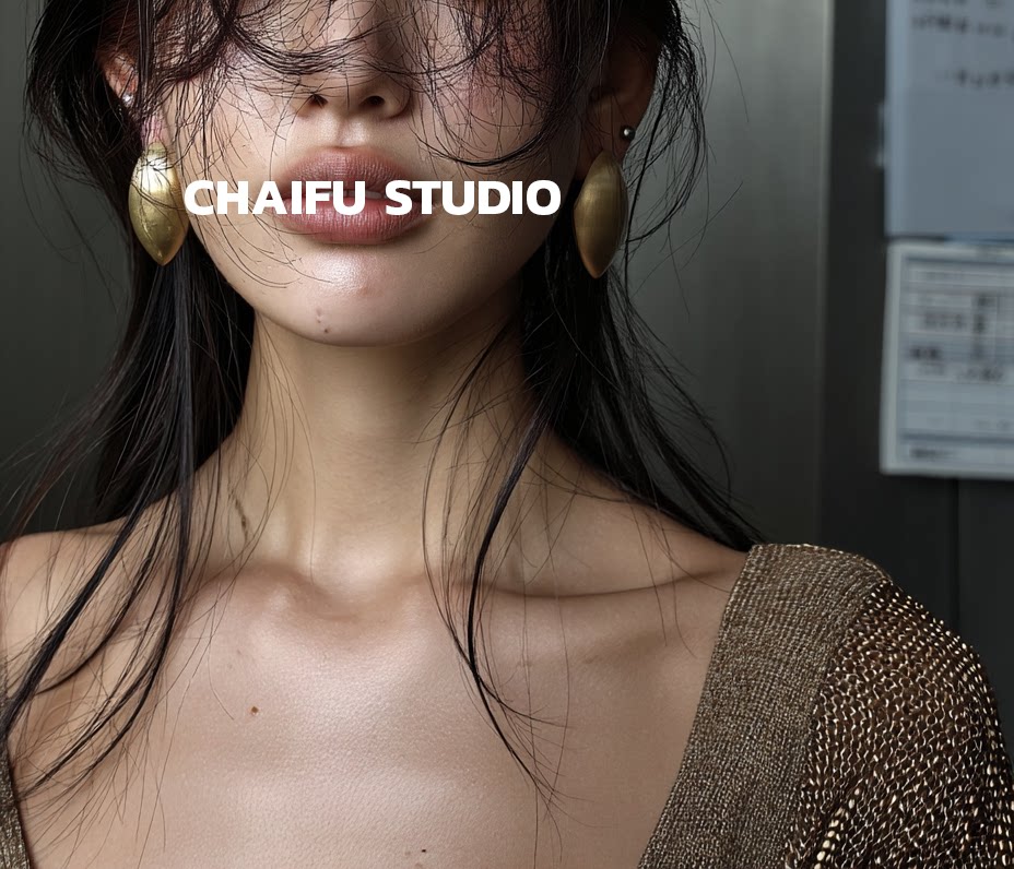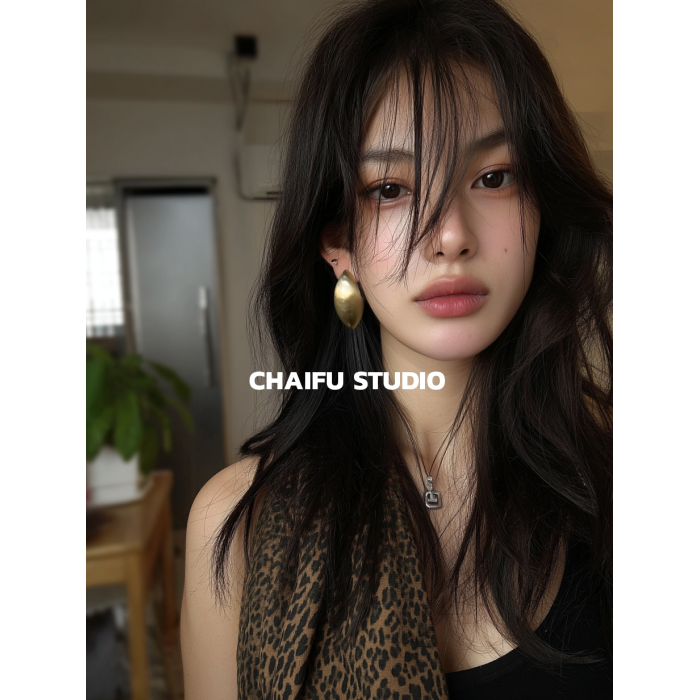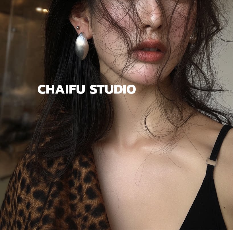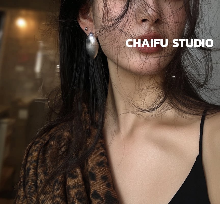 柴夫工作室/R562 歐美誇張橢圓金屬拉絲耳釘輕奢冷淡風顯瘦耳環