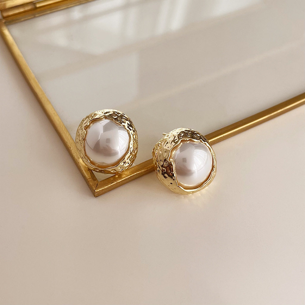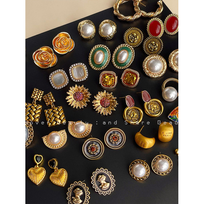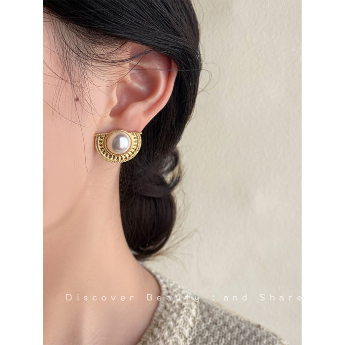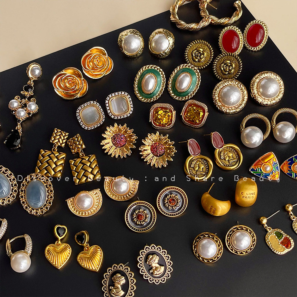 復古vintage時尚耳環小衆氣質中古風耳釘古著高級感珍珠耳飾女