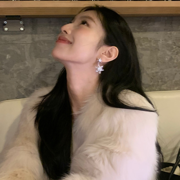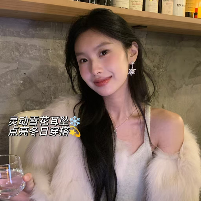 閃鋯雙雪花耳環女精緻小巧耳釘輕奢高級感獨特漂亮耳飾無耳洞耳夾
